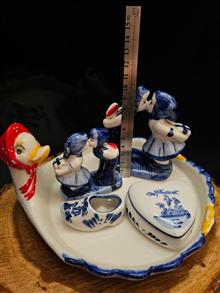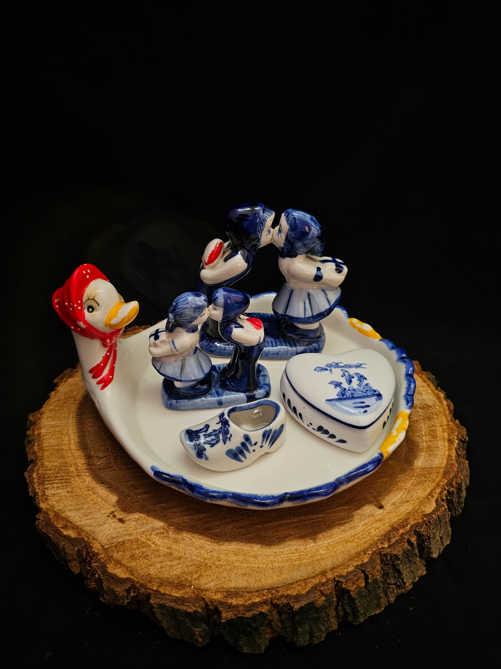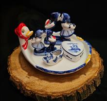 قیمت ذکر شده برای مجموعه دلف باهم میباشد ___مجموعه دلف قدیم ی با تکه های نایاب شامل :یک عدد دیس زیبا (ازپشت کار پریدگی داره ورنگ کار طبق تصویر بعضی قسمتا رفتگی داره)،جاجواهری نایاب یک عدد کاملا سالم،کفش مینیاتوری نایاب یک عدد کاملا سالم،مجسمه بوسه دوعدد
