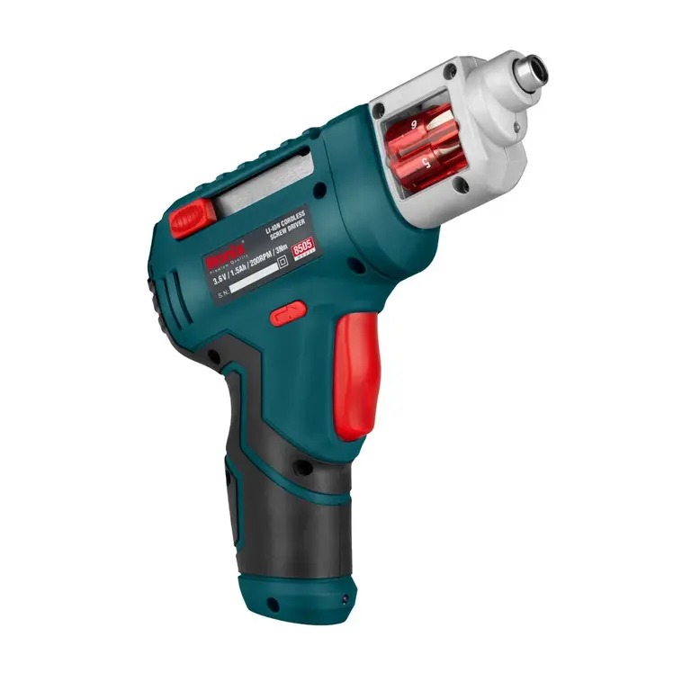 پیچ گوشتی شارژی خشابی 8505 رونیکس، 560 گرم وزن داشته ، دارای سرعت گردش آزاد 200 دور در دقیقه است و باتری لیتیومی آن ولتاژی برابر 3.6 ولت دارد. این پیچ گوشتی شارژی دارای 18 سری مختلف با سایزهای متفاوت بوده و همچنین یک رابط سری پیچ گوشتی 6 سانتی متری نیز همراه این محصول و متعلقات آن ارائه می شود. قابلیت چپ گرد و راست گرد به علاوه گشتاور 3 نیوتن متری این محصول به شما اجازه باز و بسته کردن پیچ های مختلف را می دهد. همچنین یک عدد چراغ LED در قسمت جلوی این ابزار تعبیه شده است که با کار کردن دستگاه، روشن می شود و امکان کار در محیط های تاریک و کم نور را برای کاربر فراهم می کند.