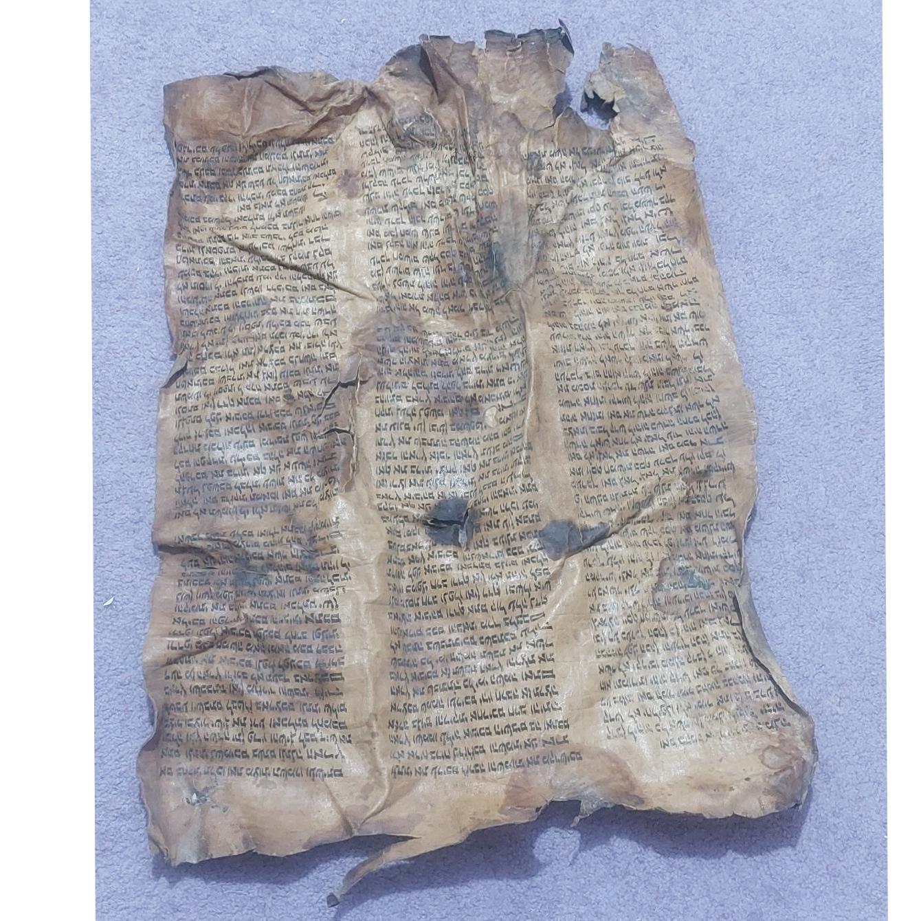 کتیبه ای از تورات بر روی چرم با خط عبری آرامی