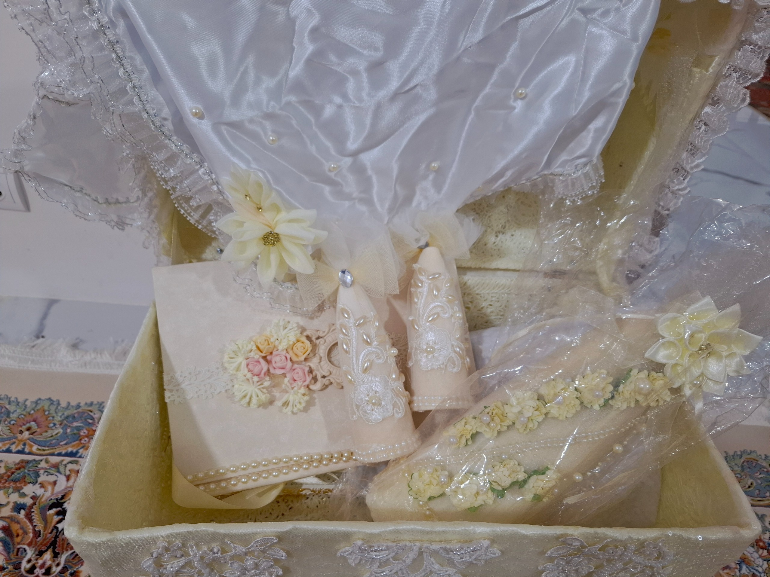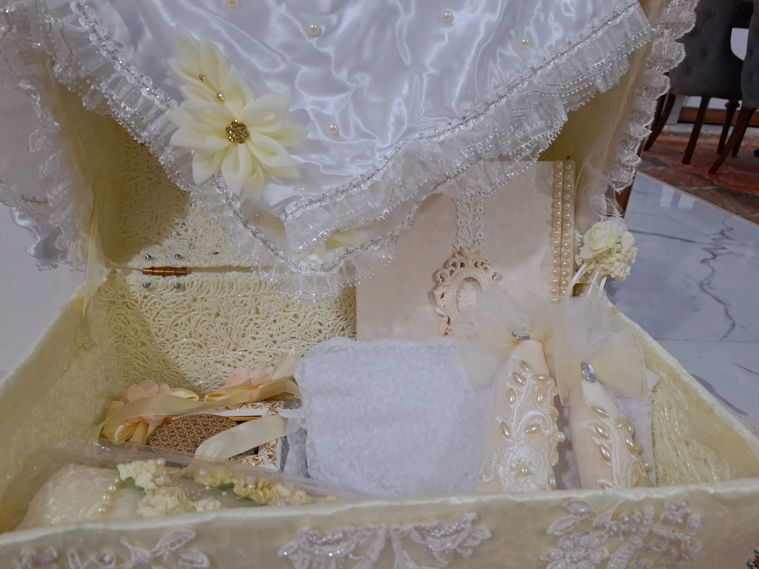 شامل چادر قرآن قند ساب کله قند اینه گل تزیینی خودکار تزیینی دفتر بله برون