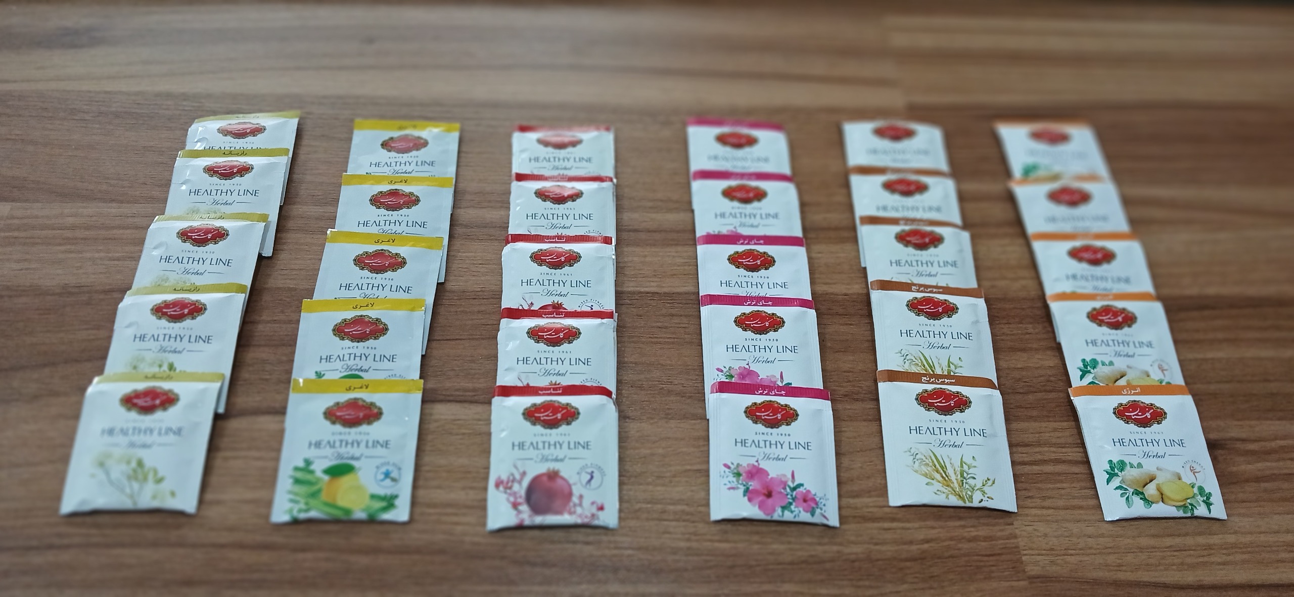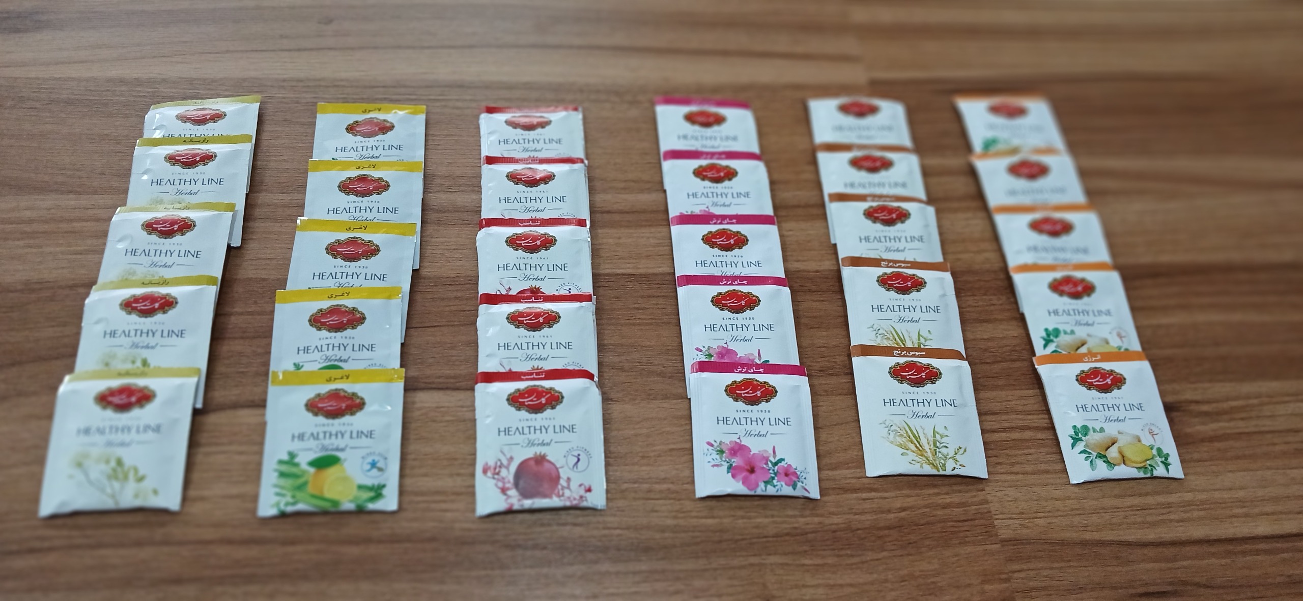 5 عدد رازیانه، 5 عدد لاغری، 5 عدد تناسب (انار)، 5 عدد چای ترش، 5 عدد سبوس برنج، 5 عدد انرژی.