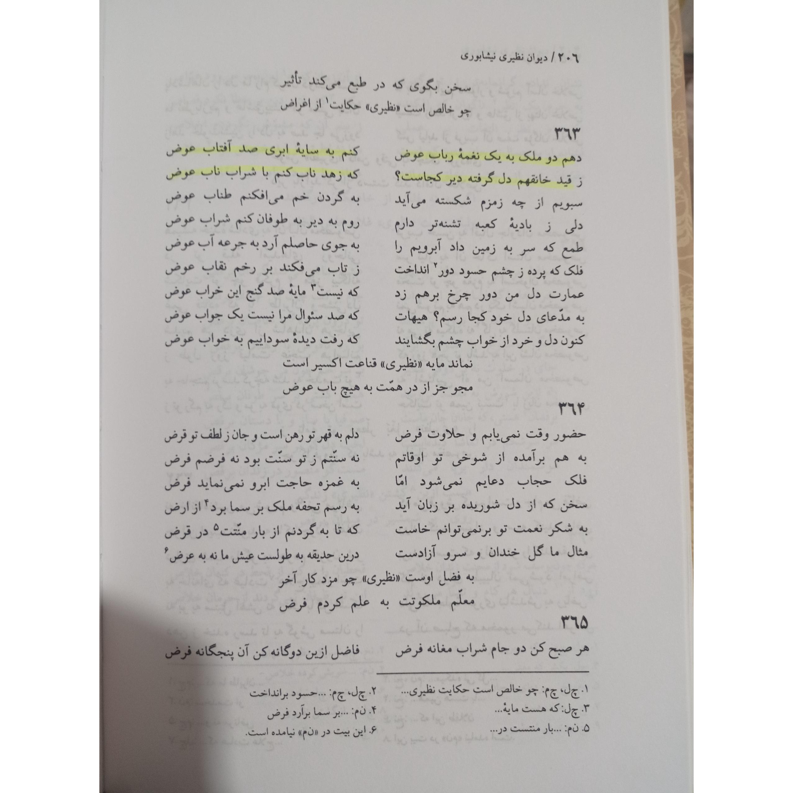 پاره اندکی از شعرها هایلایت شده است. کتاب دارای روکش و جلدگالینگور و بسیار تمیز است .