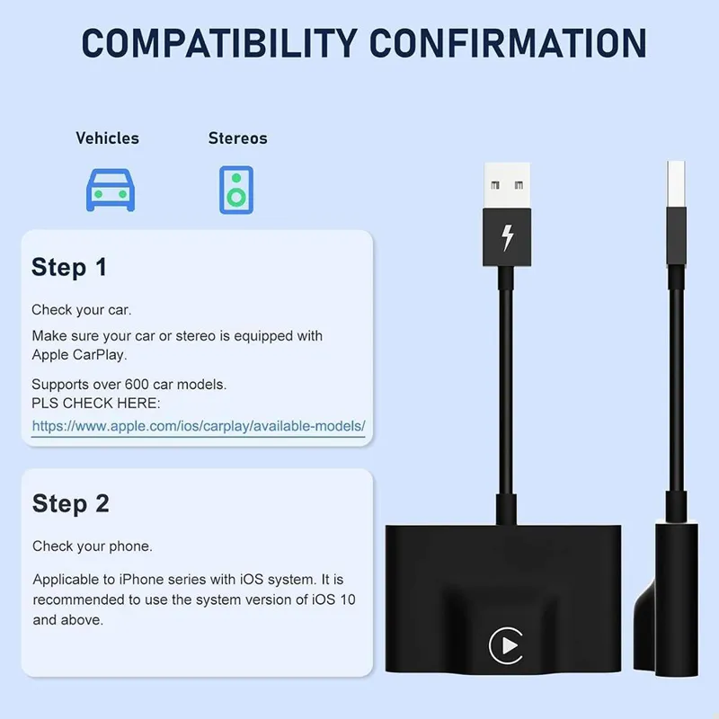 سازگاری جهانی : هنوز در حال تلاش برای انتخاب آداپتور برای ماشین خود هستید؟ دانگل بیسیم CarPlay ما میتوان تقریباً با تمام مدلهای خودرویی که دارای کارخانه CarPlay هستند، با اکثر نسخههای فروش کار میکند) و شما را از مشکلات سازگاری مدلهای رها میکند. آیفون