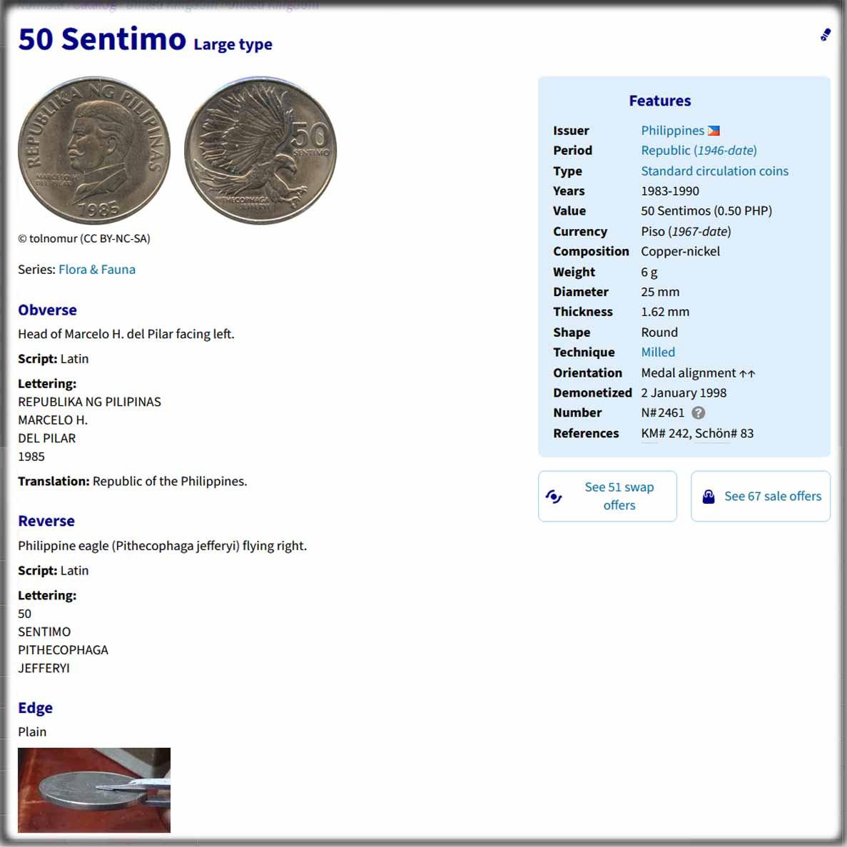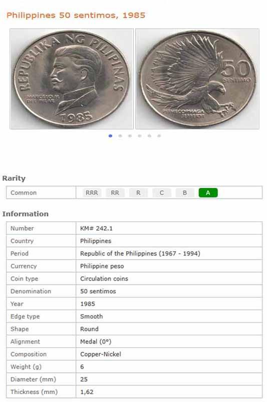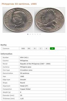 سکه 50 سنت فیلیپین 1985 (بسیار کمیاب)