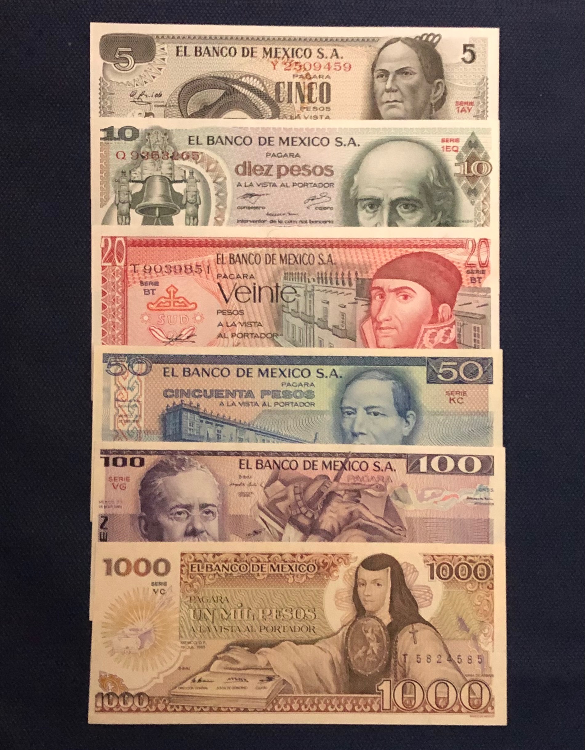 ست 6 تایی اسکناس بانکی پزو مکزیک