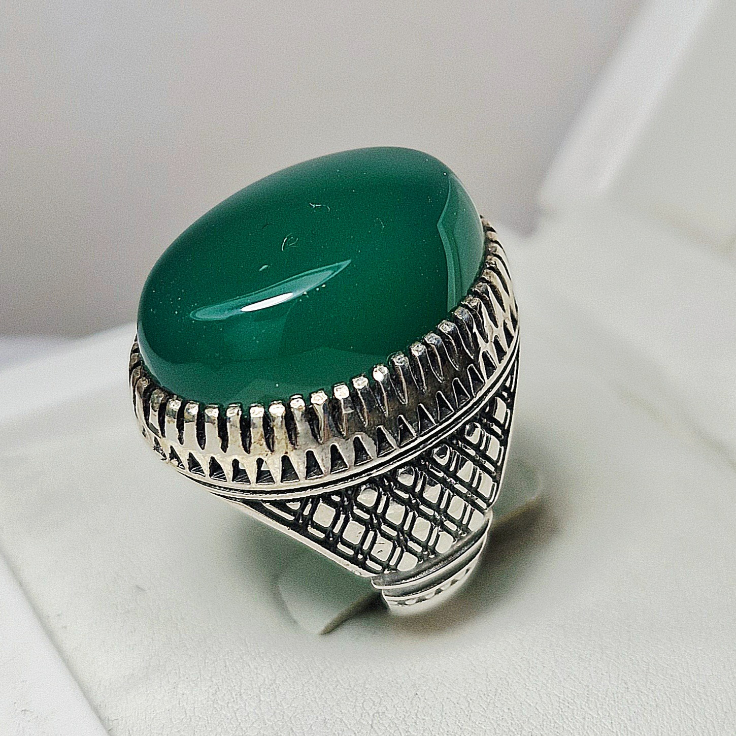 انگشتر عقیق سبز درباری