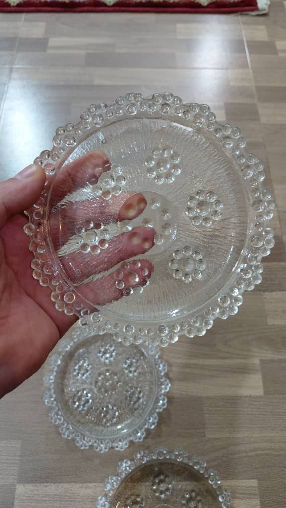 3 عدد پیش دستی بلوری بهشتی به قطر 17 سانت فروش بصورت یکجا.