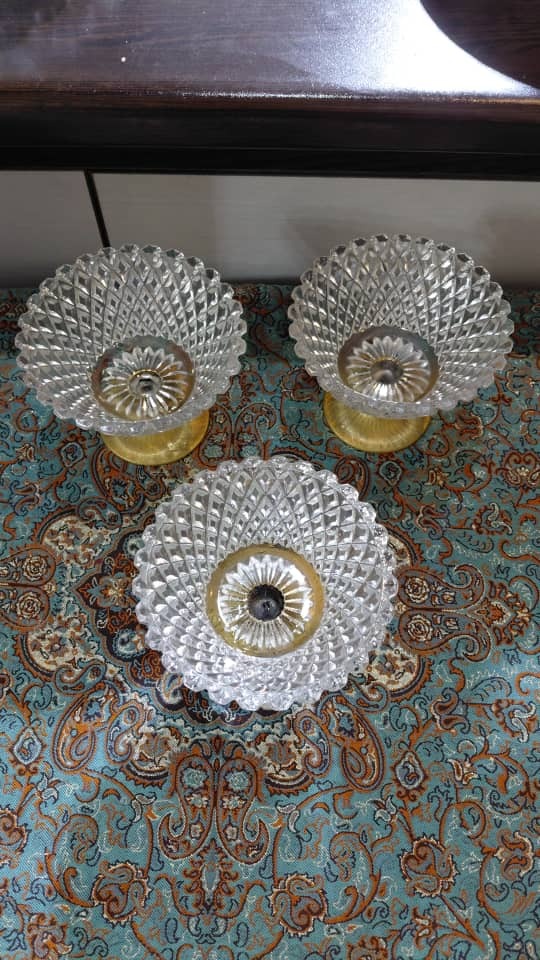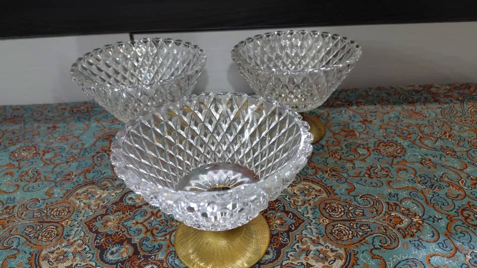 3 عدد بستی خوری کریستال قدیمی ایتالیایی مدل خشتی به قطر 8 سانت و ارتفاع 12 سانت.فروش بصورت یکجا.خارجی و مربوط به دوره پهلوی میباشد