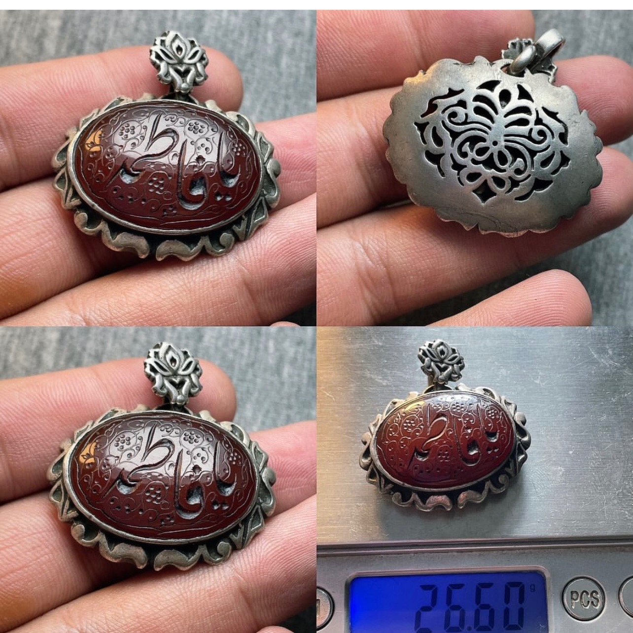 عقیق کبدی کرزی اصل پرگوشت قالب نقره دستساز سنگین مجموع وزن 26/5 گرم