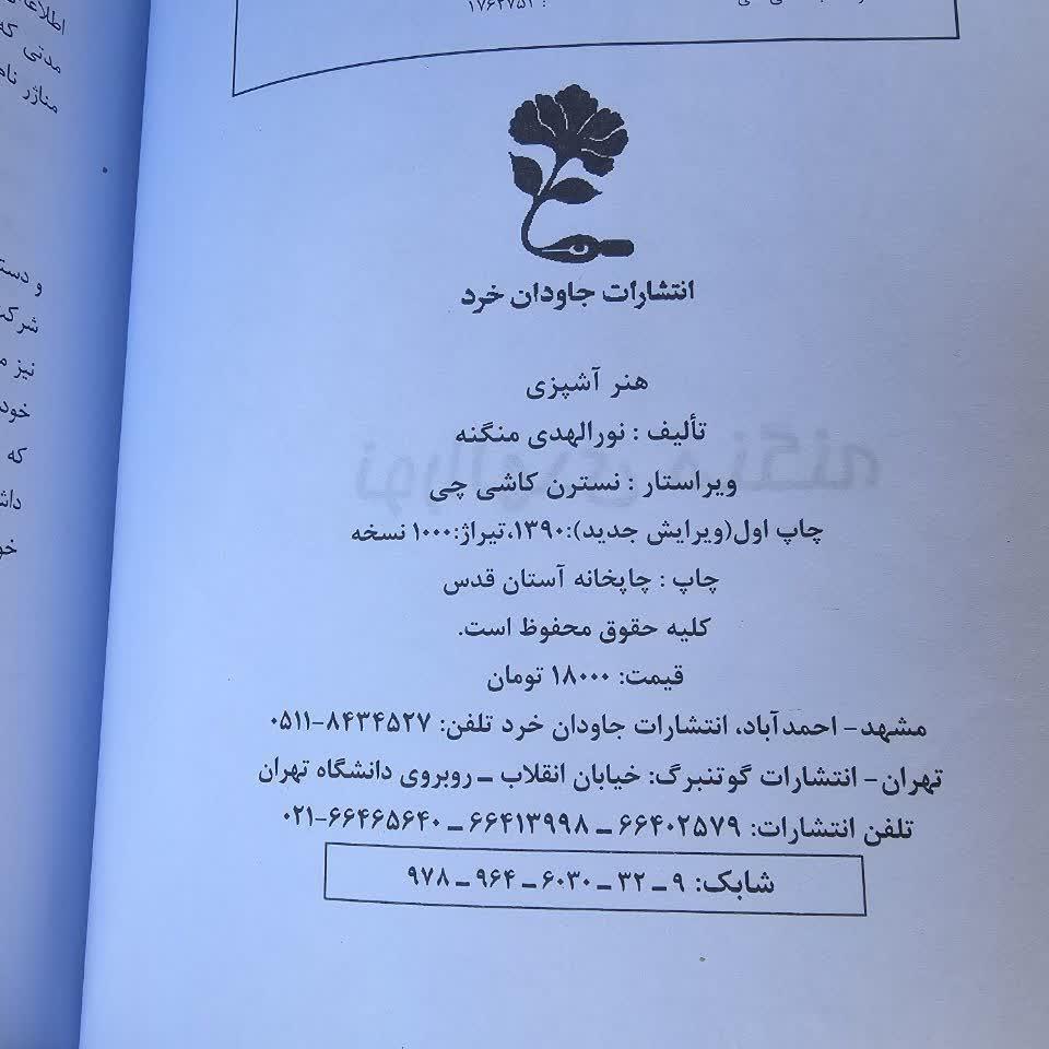 کتاب کاملا نو و به هیچ عنوان بازنشده است. از کتابهای مرجع حوزه آشپزی است. کاغذ ضخیم و جلد قوی و بادوام.