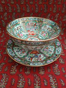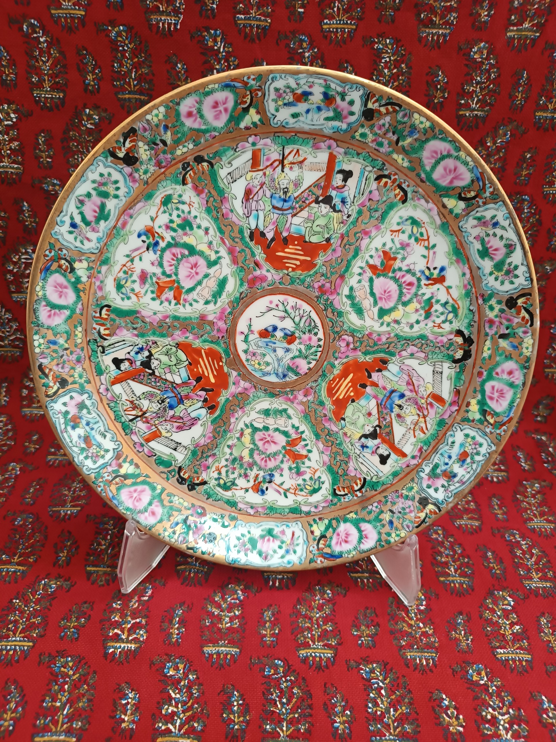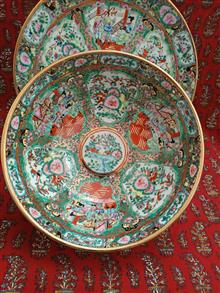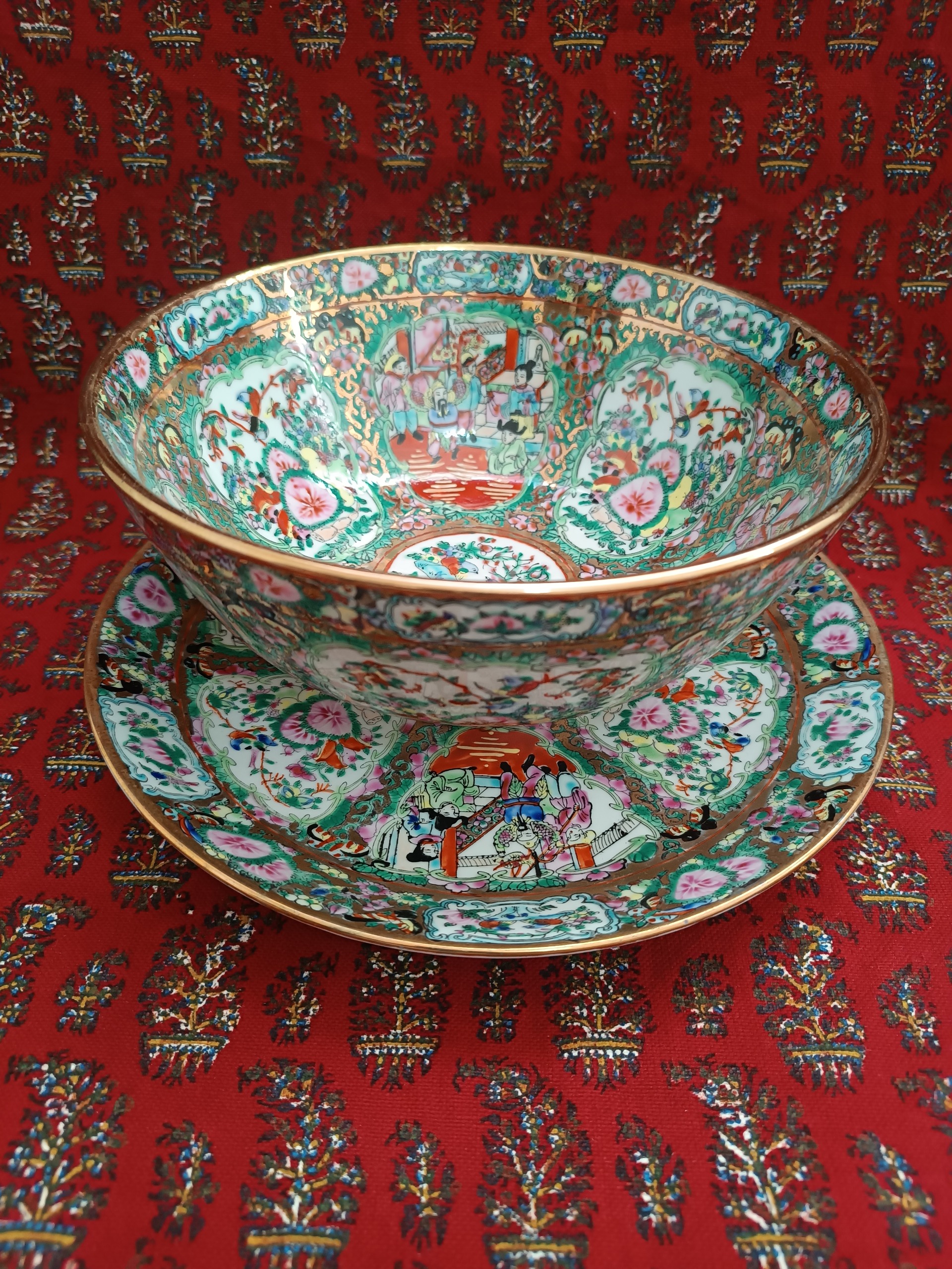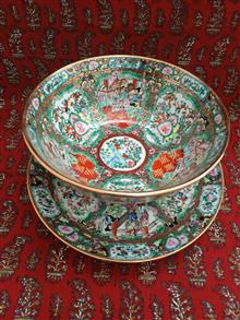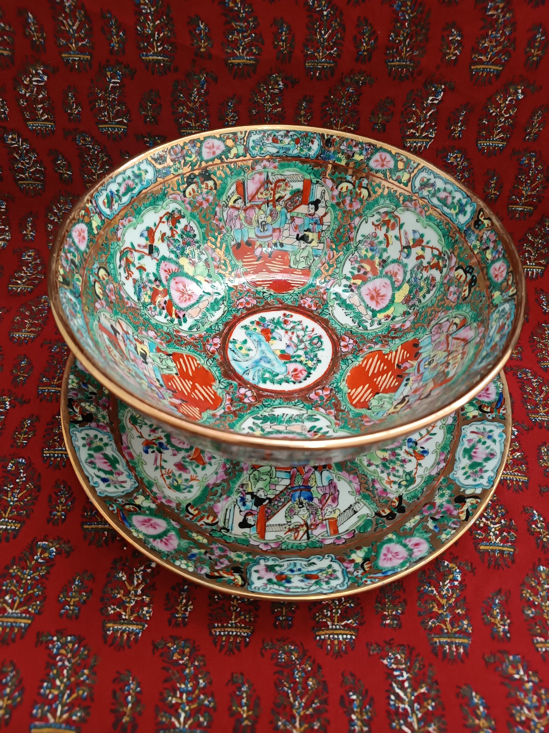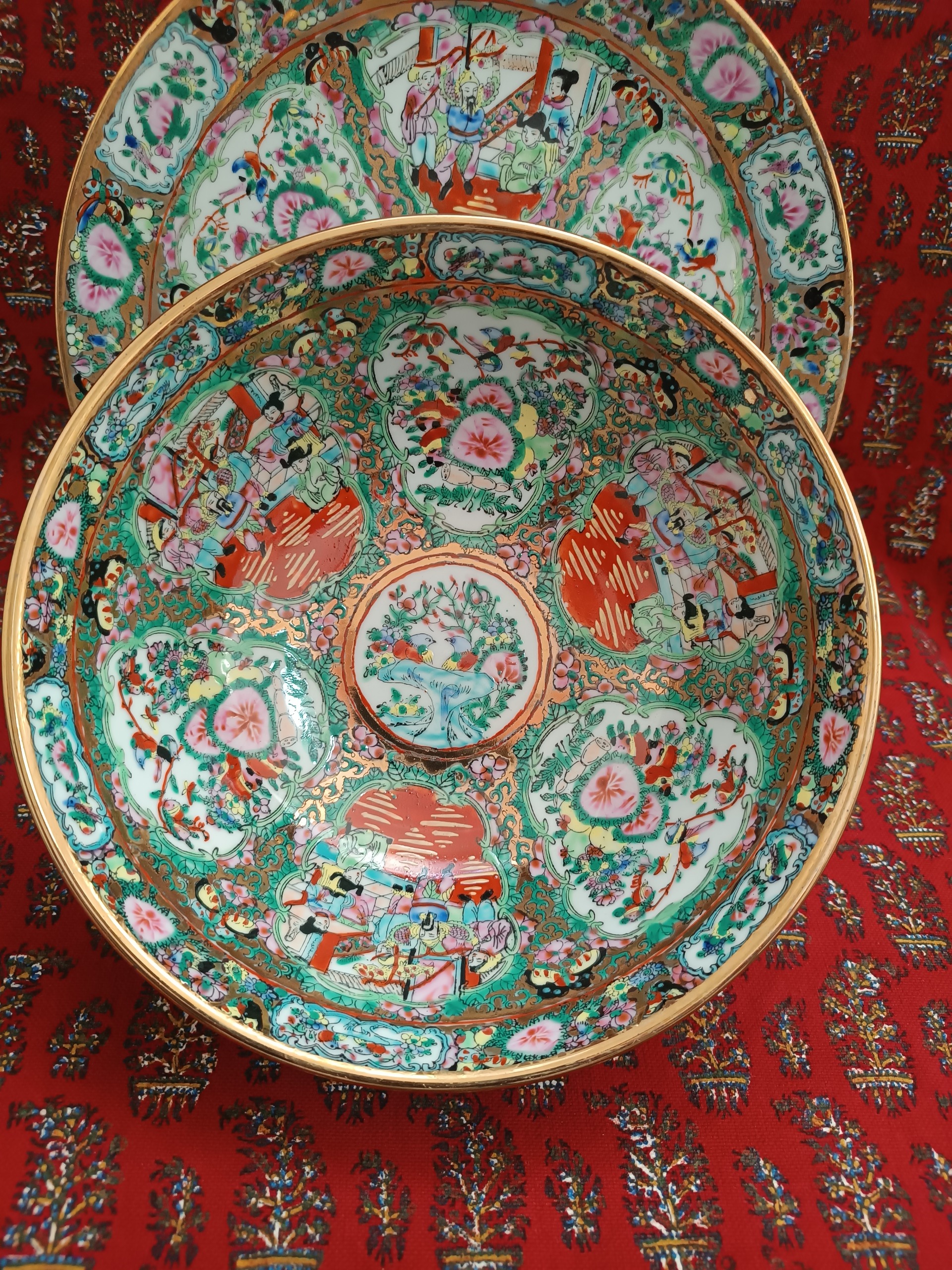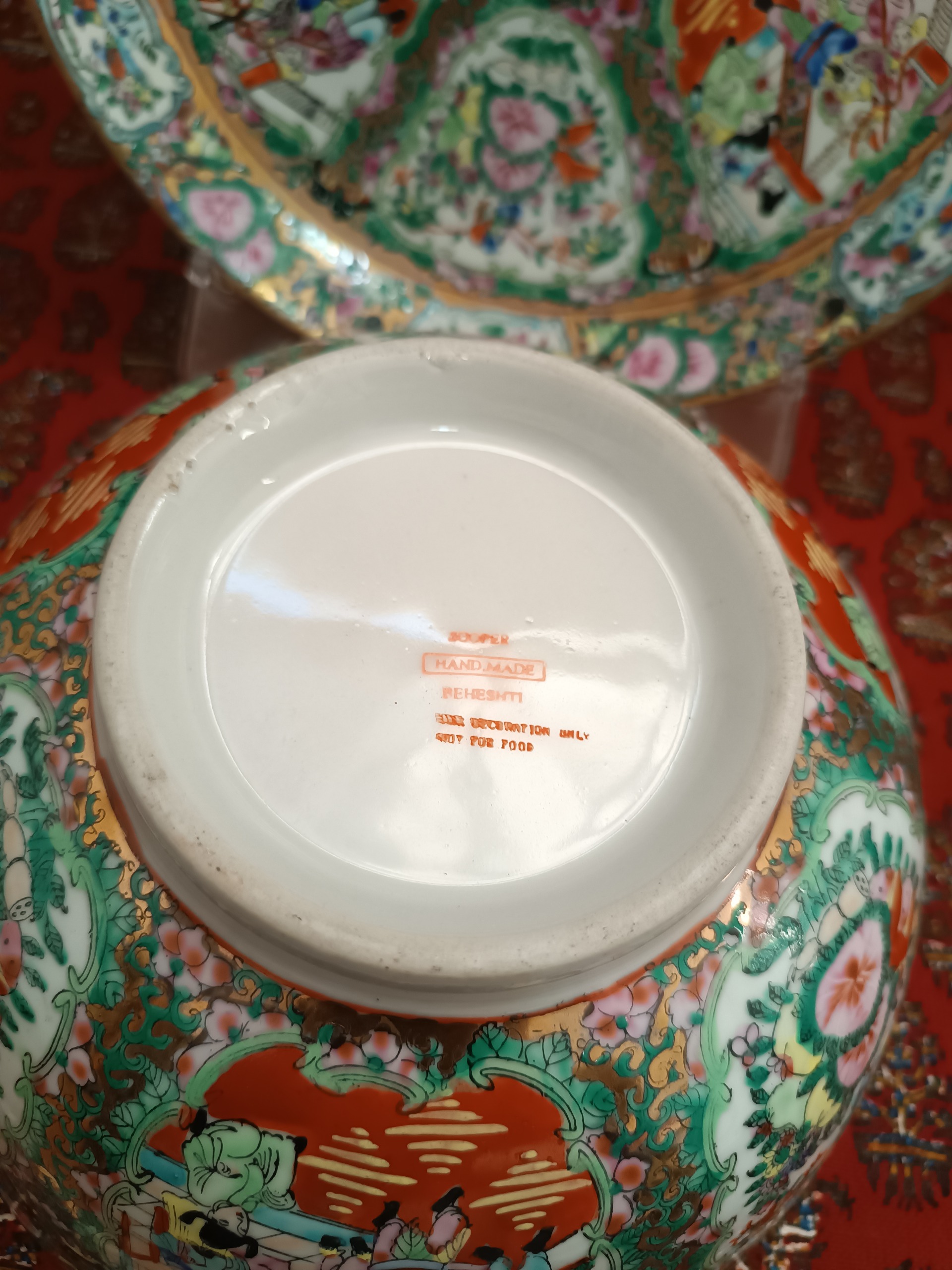 کاسه بشقاب پر کار گلمرغی طرح قلاب ماهی چین قدیم تماما نقاشی شده دست کار با ارزش و کلکسیونی قطر بشقاب 26 سانت قطر کاسه 23 سانت