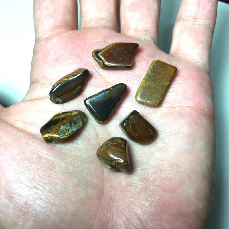 سنگهای صیقلخورده چشم ببر با رنگ طلایی-قهوهای زیبا، جمعاً 14/43 گرم.
