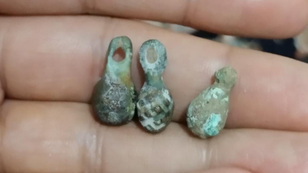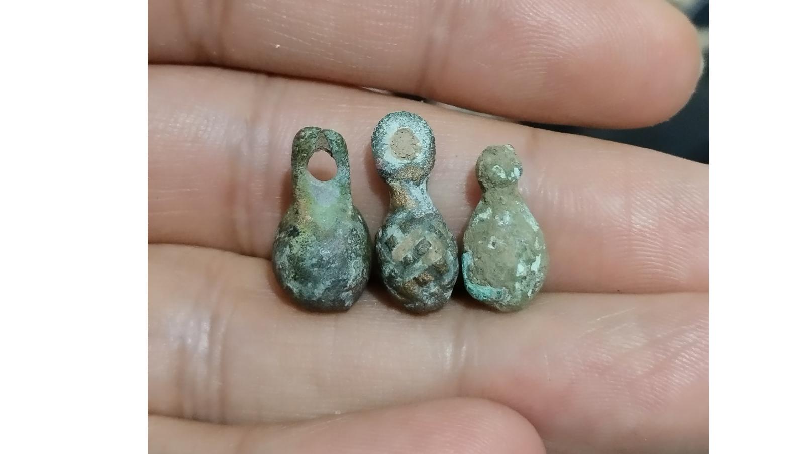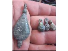 سه عدد گوشوار مفرقی بسیار قدیمی هرکدام یک مدال دارند سه عدد اندازه یک بند انگشت .ولی متعلق به هزاران سال قبل .خاستید پیام بدید تا بگم مربوط به کدام دوره تاریخی ایران میباشند