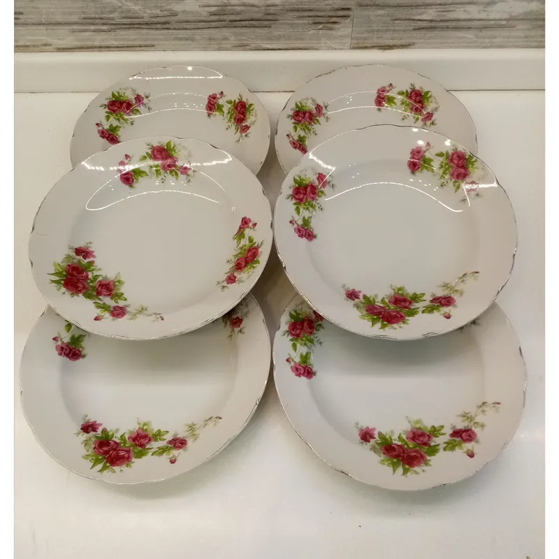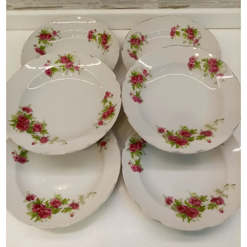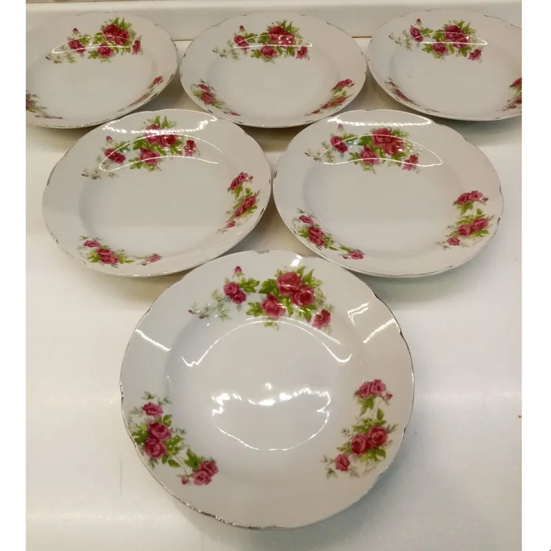 6عدد بشقاب خورش خوری گلسرخی ژاپنی،سفارش بازرگانی ساکی طهران، اندازه قطر بشقابها 20 سانتیمتر میباشد وهمگی سالم هستند. قیمت برای 6عدد بشقاب یکجاباهم است.