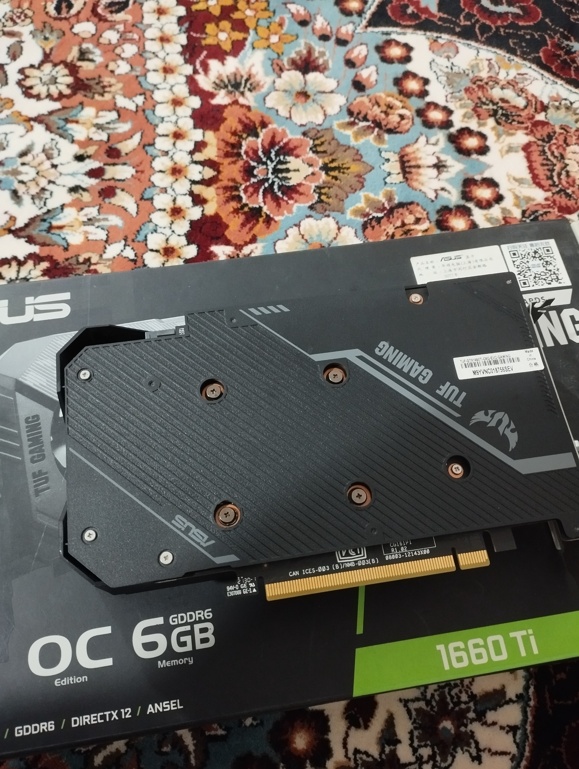 کارت گرافیک 1660ti مدل ایسوس تاف گیمینگ بسیار تمیز بدون هیچ گونه خطوخشی و هیچ گردو غباری تمیز مثل روز اول با اکبند مو نمیزنه کاملا تست شده از همه نظر.