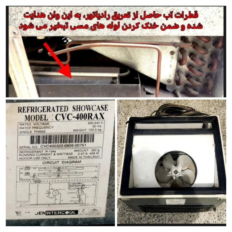 دارای حوضچه جمع آوری تعریق یخچال که لوله گرم را هم خنک می کنه)