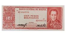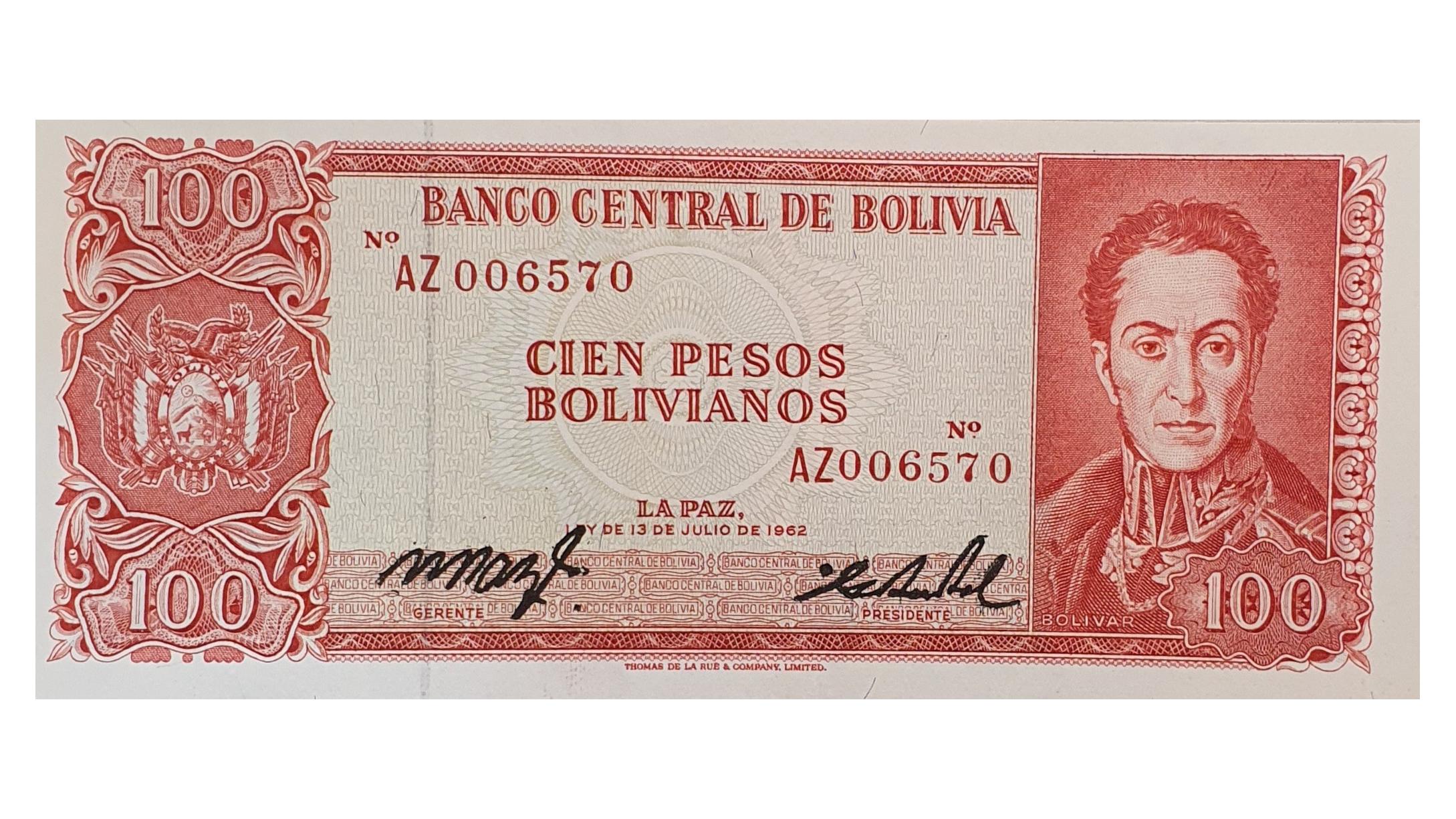 اسکناس 100 پزوبولیویانو 1962 بولیوی سیمون بولیوار