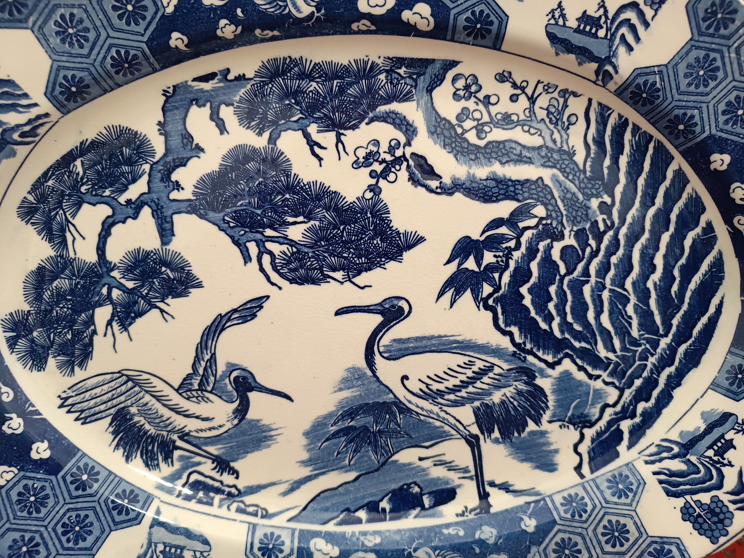 دیس کمیاب و کلکسیونی قلم آبی ژاپن قدیمی سالم و بدون شکستگی و لب پریدگی قطر 41 سانت قدمت بالا به خاطر قدمت دارای ترک لعاب هست