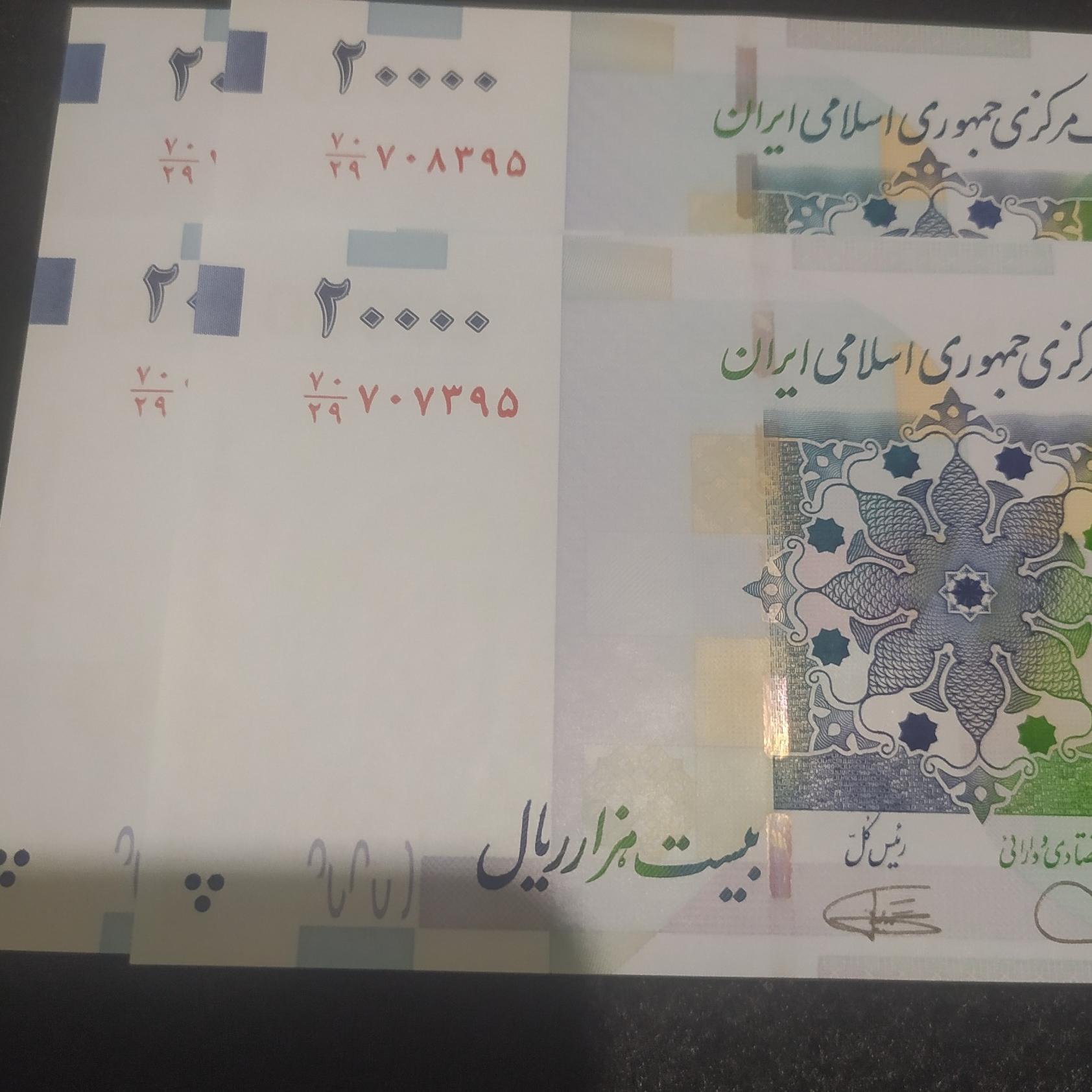 دوجفت اسکناس هم شماره در 9شماره شماره ارسالی متفاوت باعکس خواهد بود