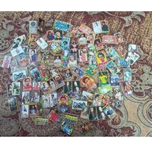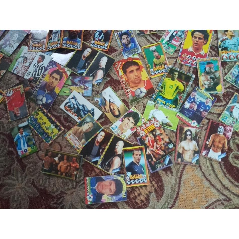 اکثرن فوتبالی و کشتی کج/ تک و توک متفرقه داخلشون داره/کیفیت کارتها مطلوب هست و در سایز ها و موضوعات مختلفی هستن بین 175 تا 180 تا هستن/ دقیقن نشمردم ولی قطعن از 175 تا کمتر نیستن
