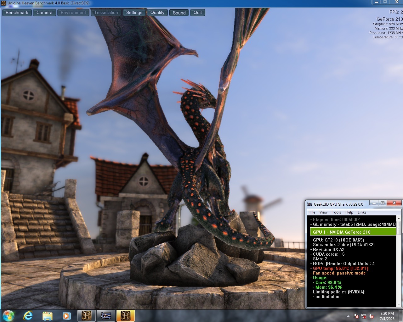 گرافیک با Unigine Heaven تحت استرس قرار گرفت به مدت 50 دقیقه مشکلی نداشت.(عکس چهارم) ماکزیمم دما 56 درجه