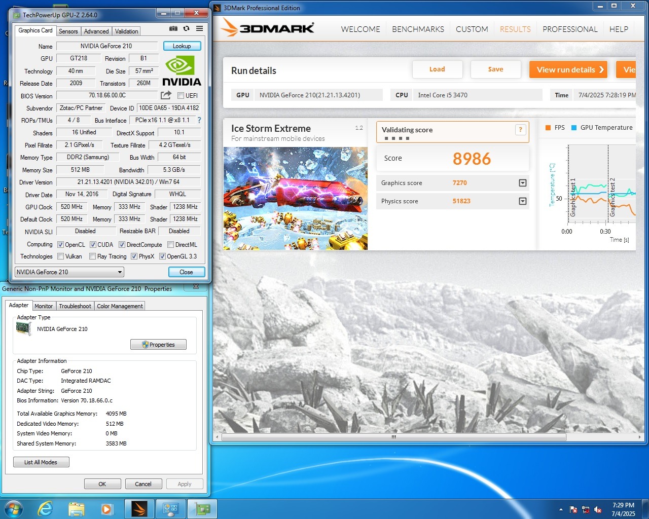 تست گرافیک در محیط ویندوز توسط 3DMark و برنامه GPU-Z را در عکس پنجم مشاهده میفرمایید.