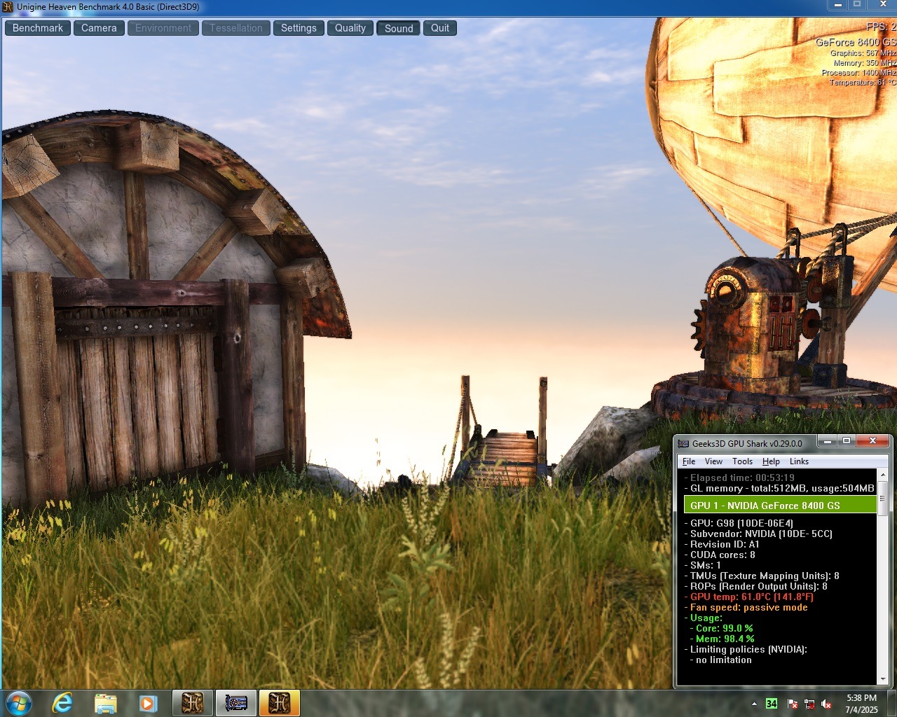 گرافیک با Unigine Heaven تحت استرس قرار گرفت به مدت 53 دقیقه مشکلی نداشت.(عکس چهارم). ماکزیمم دما 61 درجه.