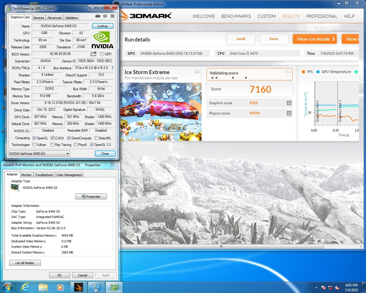 تست گرافیک در محیط ویندوز توسط 3DMark و برنامه GPU-Z را در عکس آخر مشاهده میفرمایید.