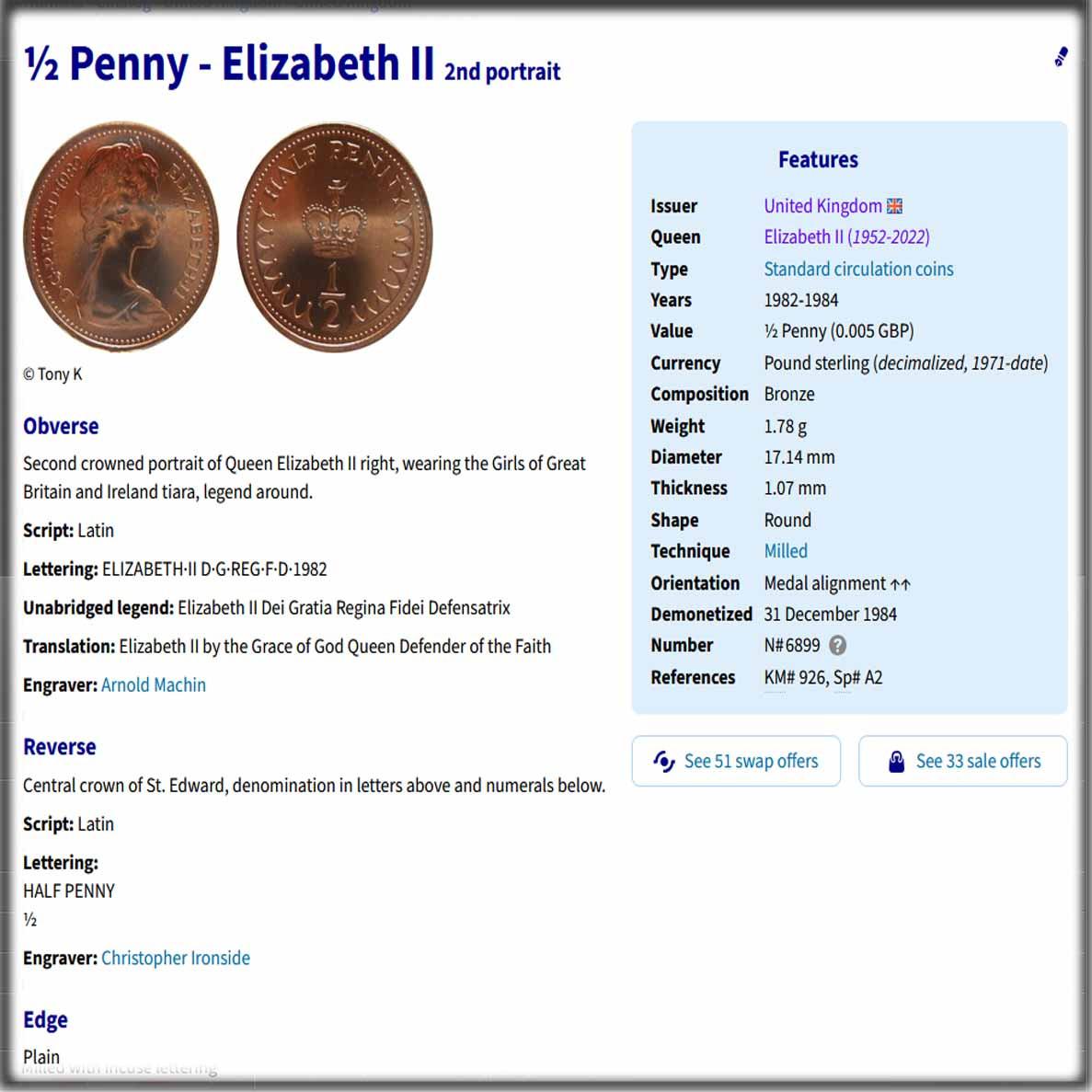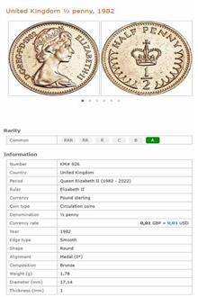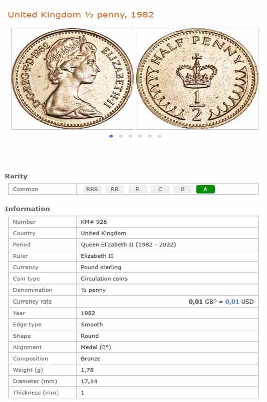 سکه نیم پنی بریتانیا 1982 (کمیاب) Half Penny