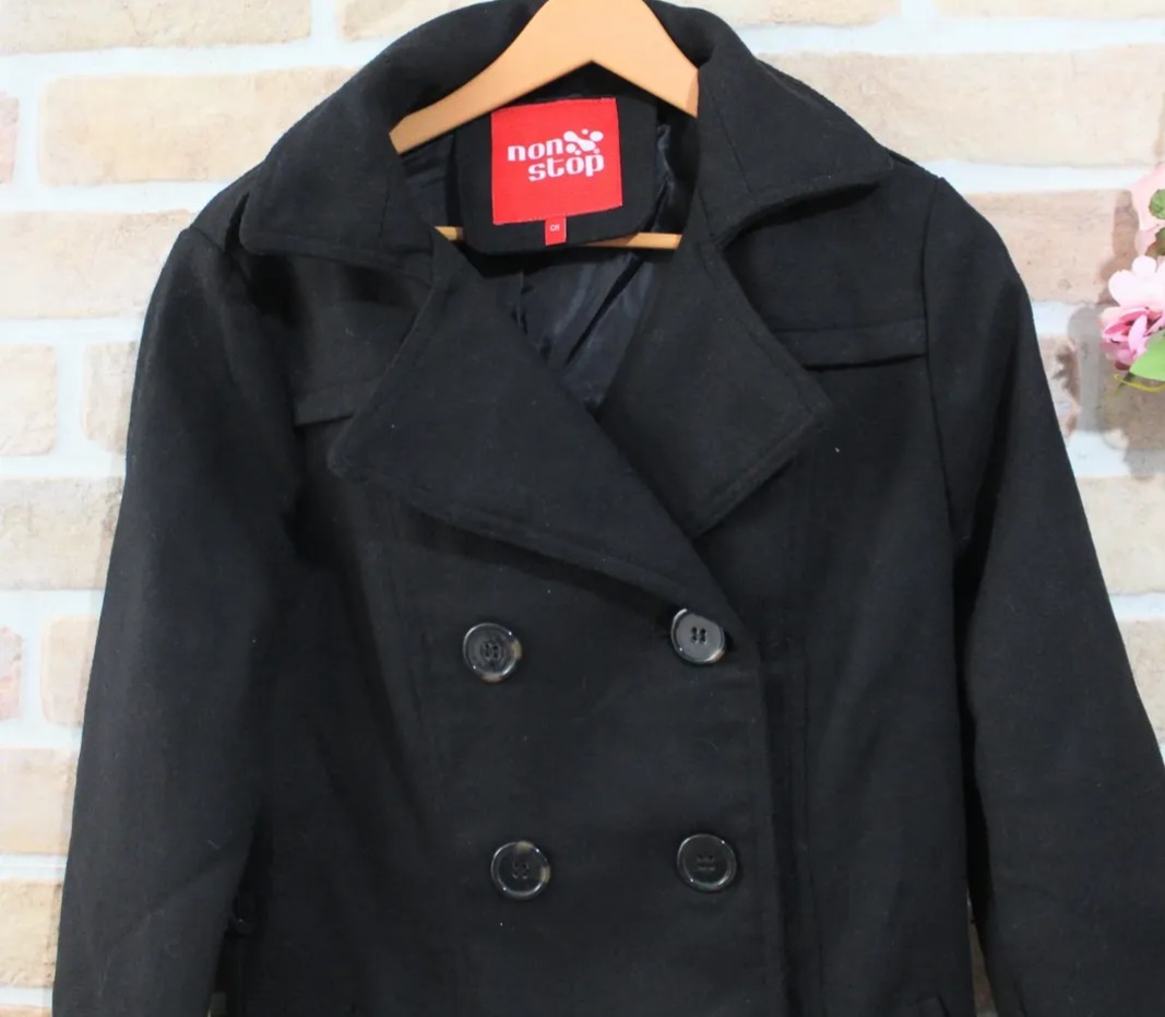اندازهها: فاصله دو زیر بغل پالتو (عرض سینه) 45 سانتیمتر، قد از سر شانه 80 سانتیمتر