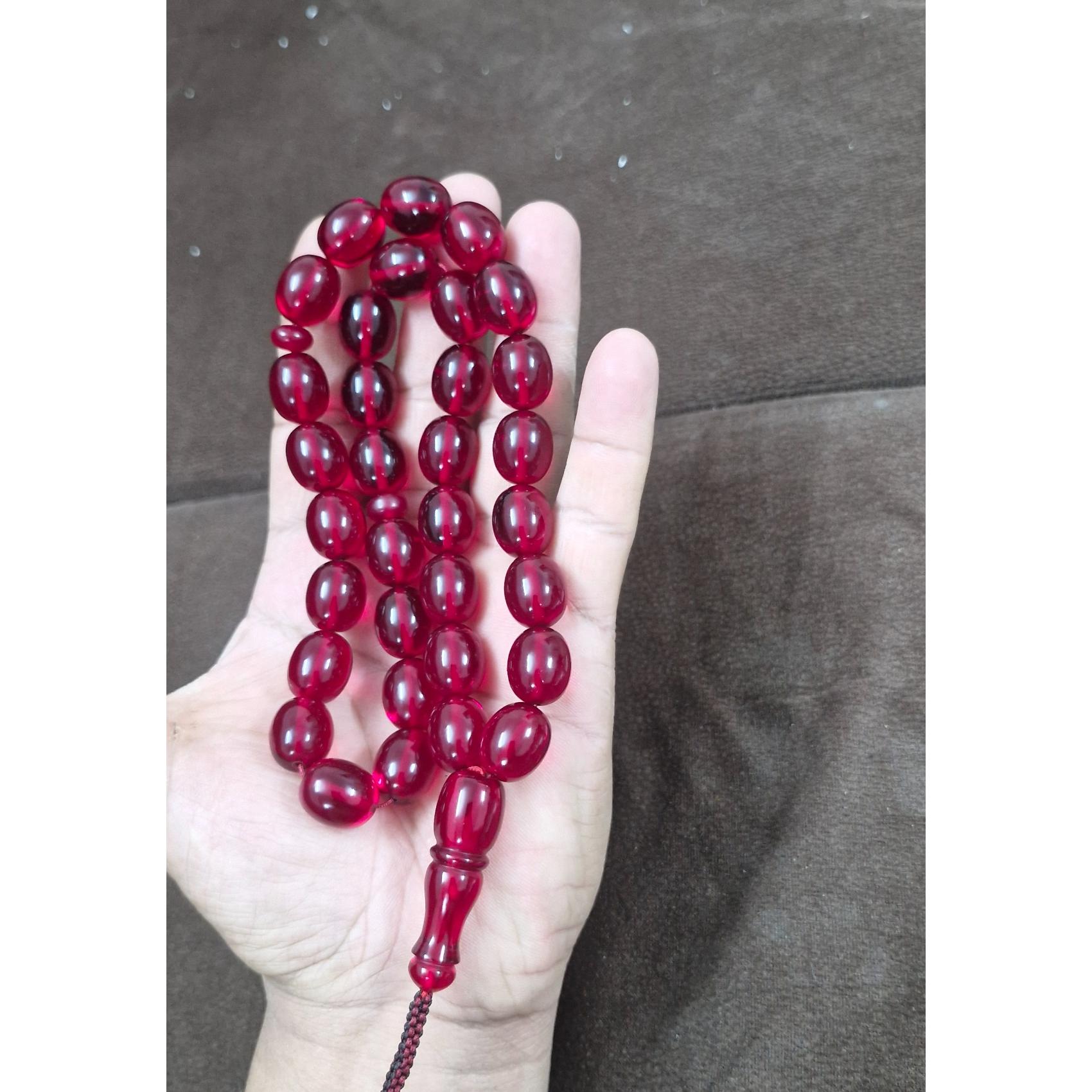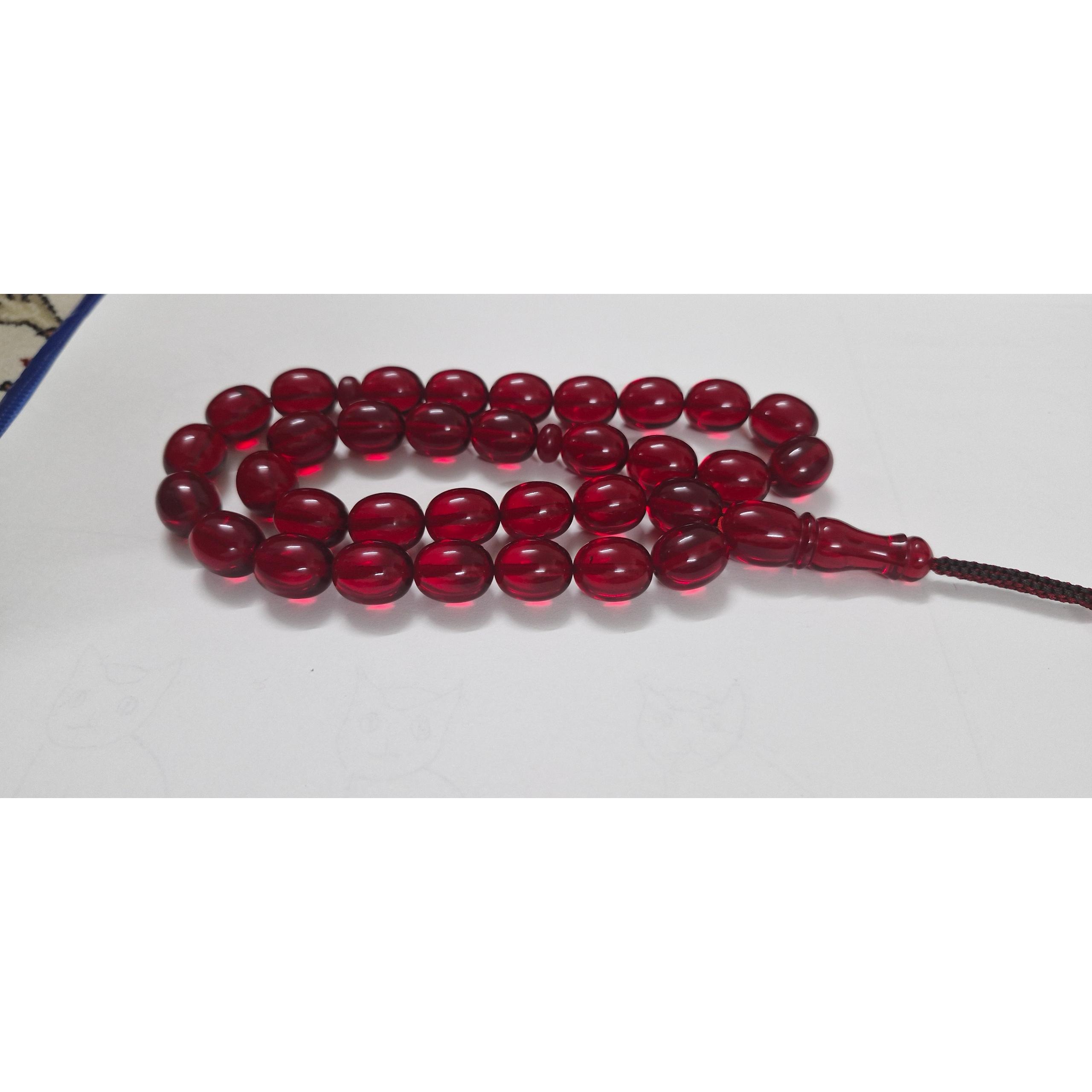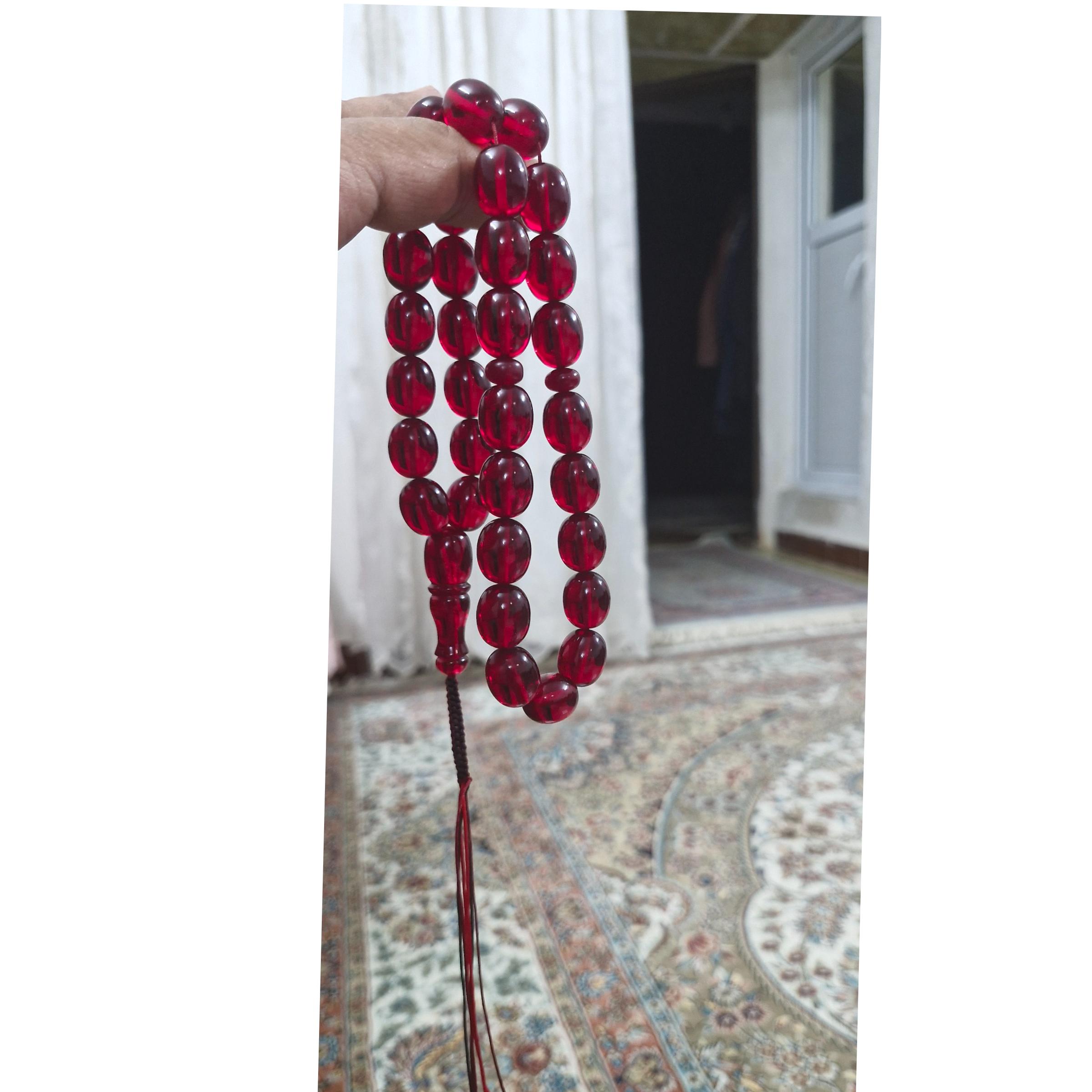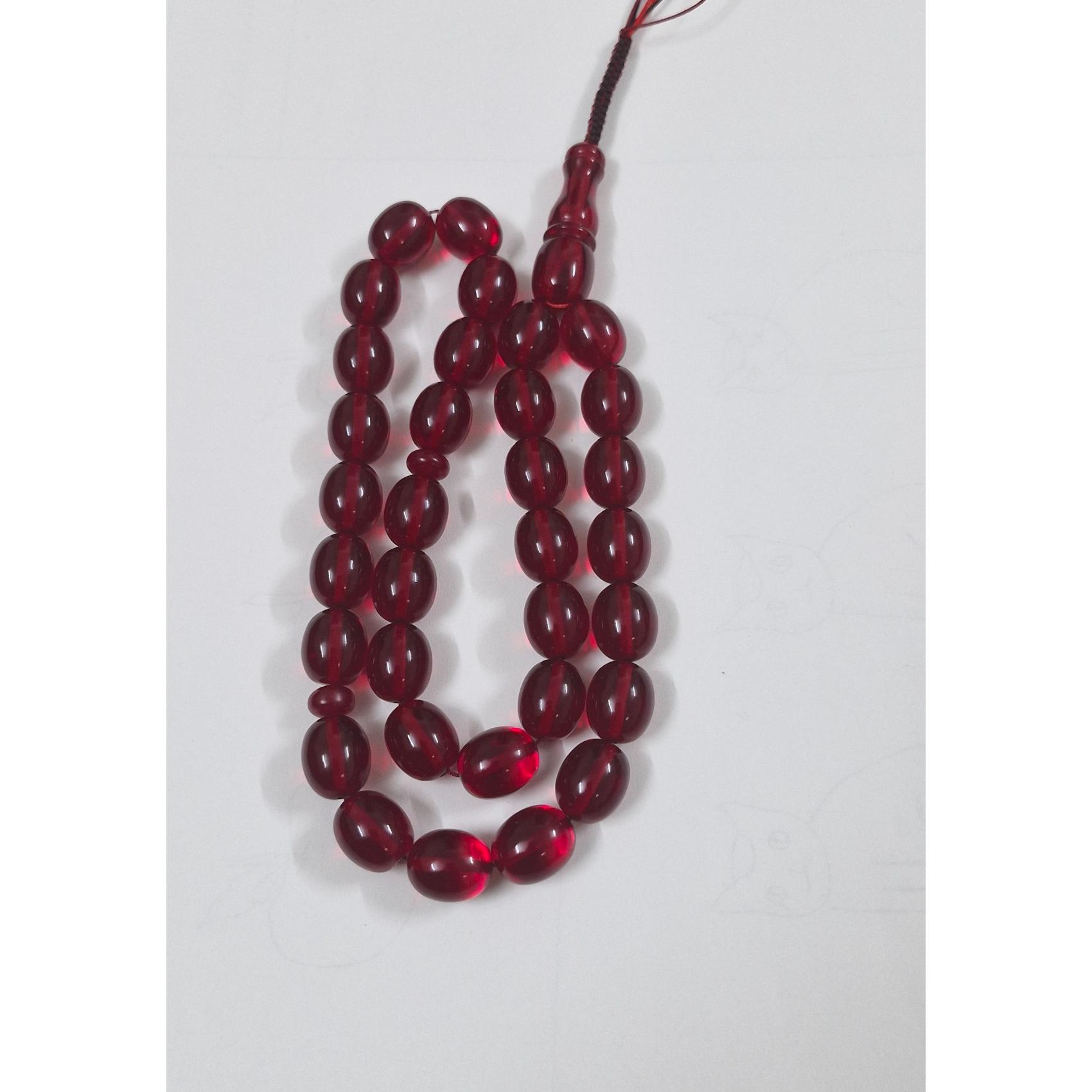 تسبیح سندلوس سی و سه دانه شمش آلمان تراش دست رنگ گیلاسی یک دست وزن72/5.طول.32سانت زیبا و خوش دست