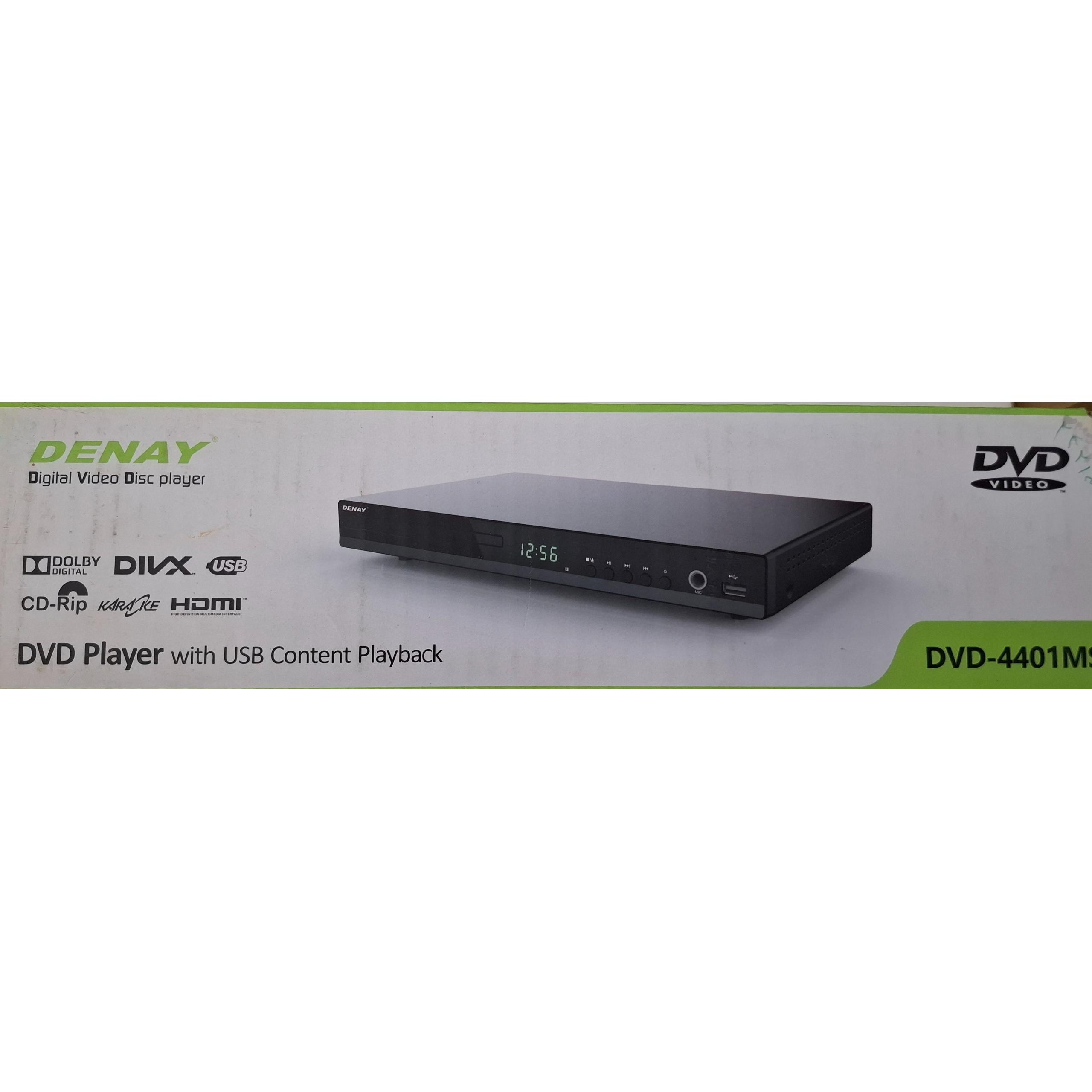 دی وی دی پلیر دنای مدل DVD-4401MS دارای پردازشگر 32 بیت بوده به این معنا که در یک پالس ساعت 32 بیت اطلاعات را میتواند پردازش کند. این مدل از فرمتهای مختلف فایلهای صوتی و تصویری پشتیبانی میکند و قادر است تصاویر را با وضوح بالا پخش میکند.DVD پلیر دنای مدل DVD-4401MS دارای خروجی HDMI، خروجی کوآکسیال صدا، پورت USB و پورت میکروفن کاراکوئه است. این مدل از استاندارد صدای دالبی دیجیتال و استاندارد تصویر DIVX پشتیبانی میکند. این دی وی دی پلیر همچنین از قابلیت CD Ripping برای انتقال فایل صوتی به حافظه فلش برخوردار است.