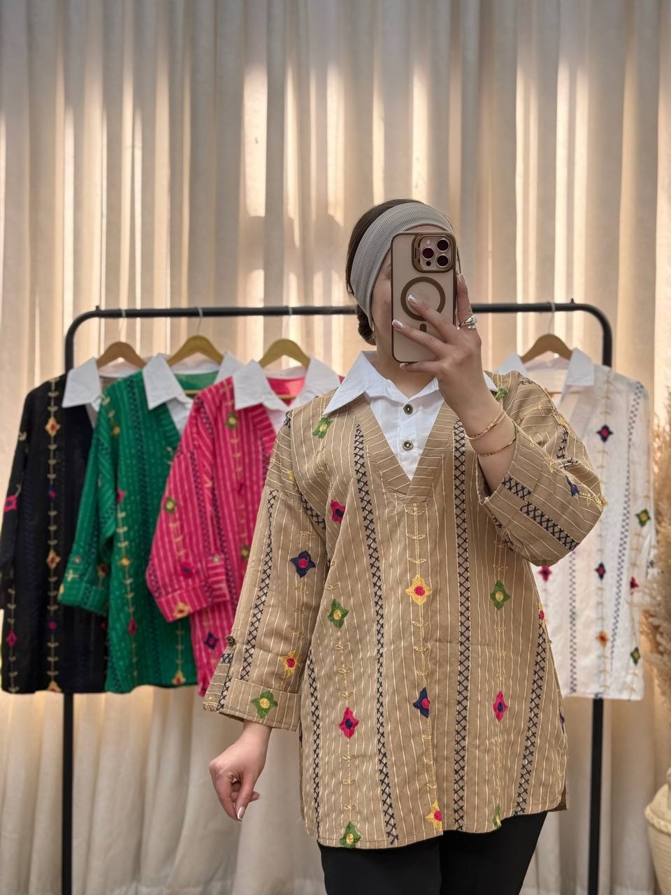 شومیز یقه مردانه خامه دوزی شده با تنخوری بی نظیر