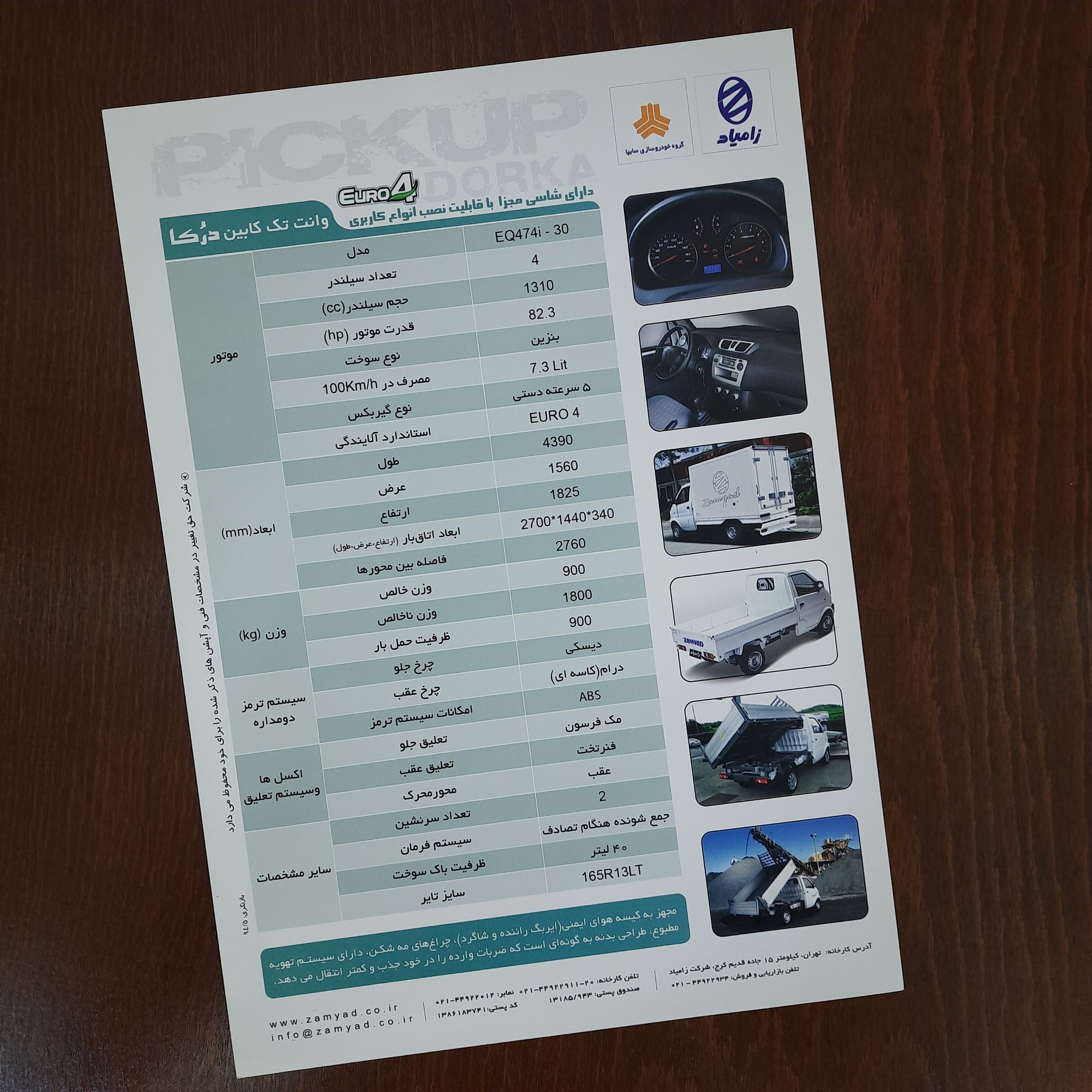کاتالوگ فیزیکی وانت تککابین درکا از شرکت زامیاد