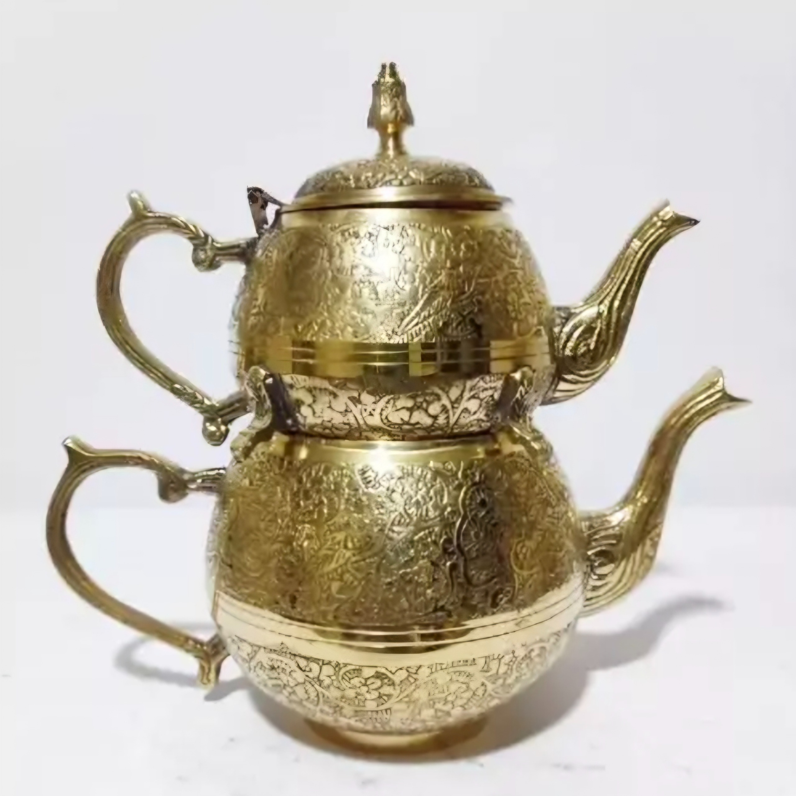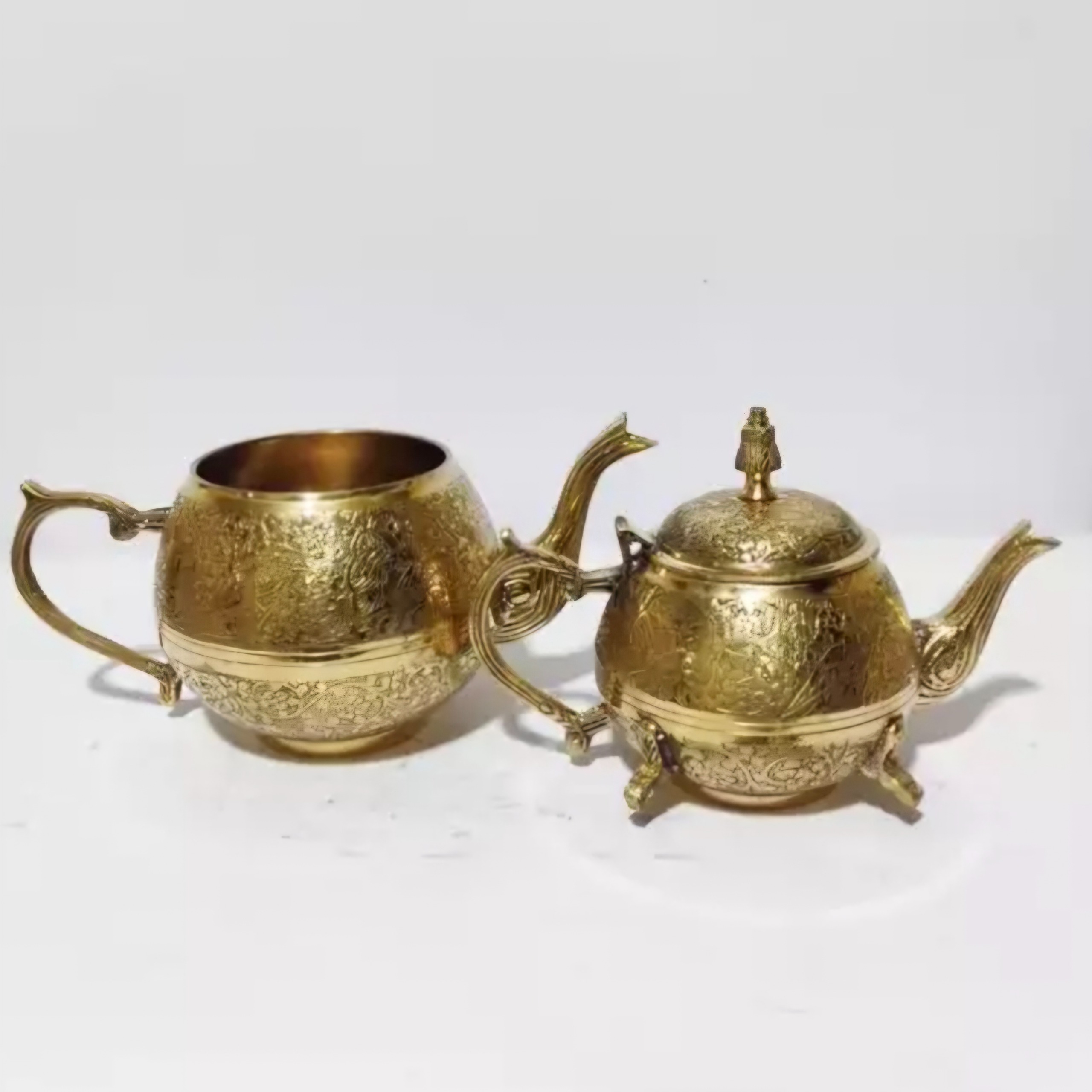 کتری قوری تمام برنجی ساخت هندوستان تمام قلم دست با طرح طاووس و کیفیت بسیار بالا و سنگین مناسب استفاده دائم و قابل شستشو بدون تغییر رنگ حجم کتری800 سی سی و قوری 400 سی سی