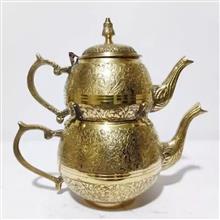 کتری قوری برنجی هندی برنزی قلم دست با طرح طاووس