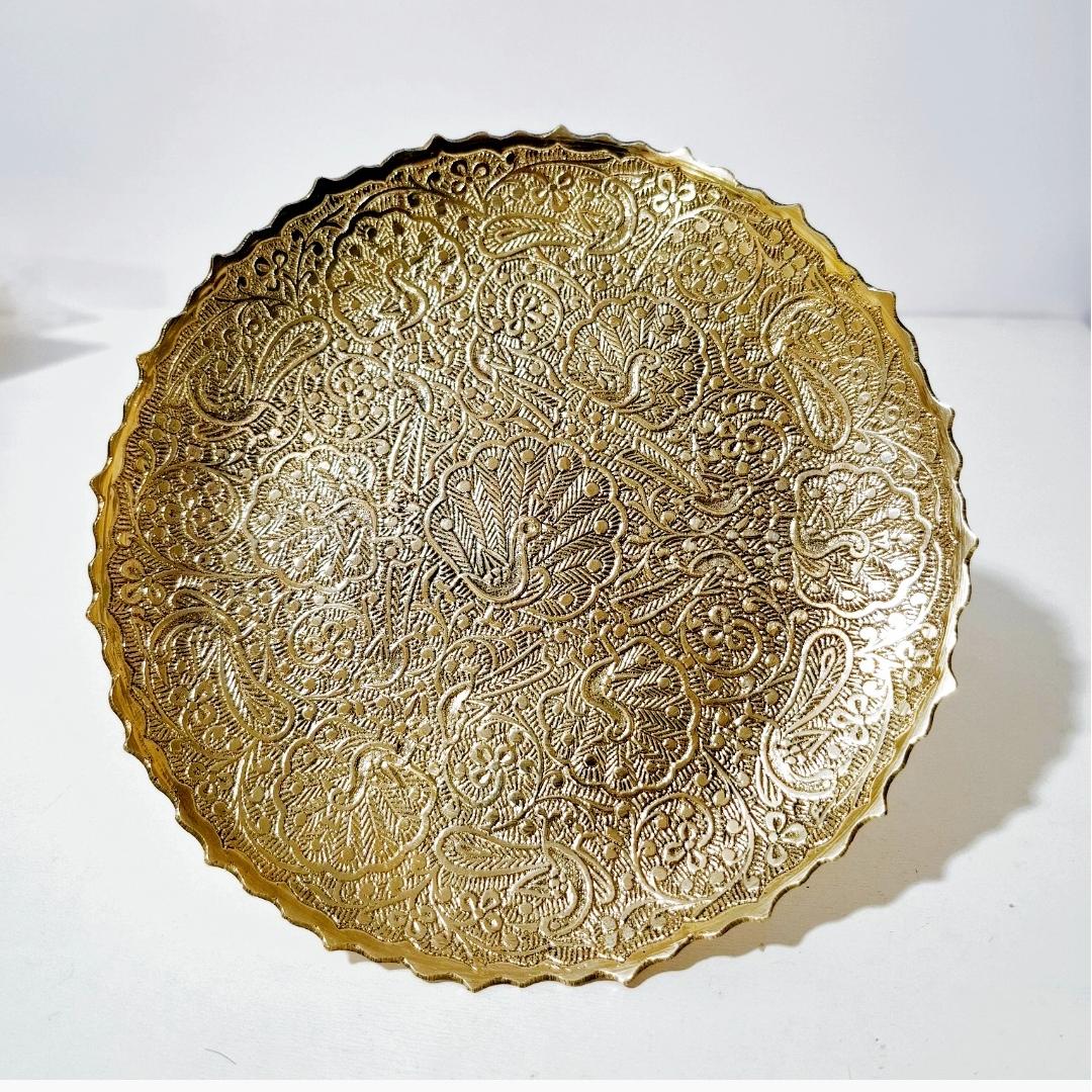 شیرینی خوری برنجی هندی برنزی قطر 20 با طرح طاووس