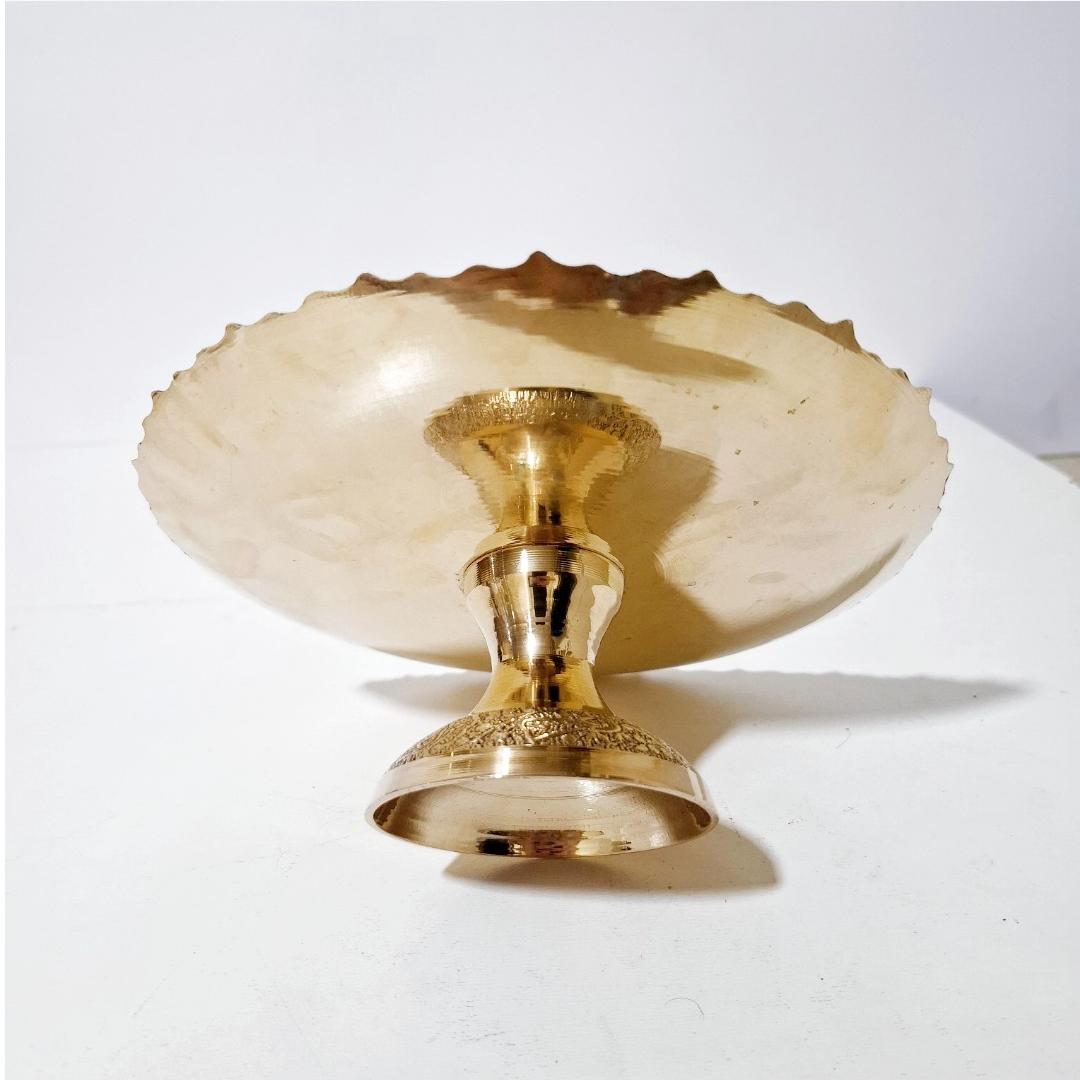 شیرینی خوری تمام برنجی ساخت هندوستان با قطر دهانه 20 سانتیمتر م ل پایه دار قلم دست با طرح طاووس و کیفیت بسیار بالا و سنگین مناسب استفاده دائم و قابل شستشو بدون تغییر رنگ