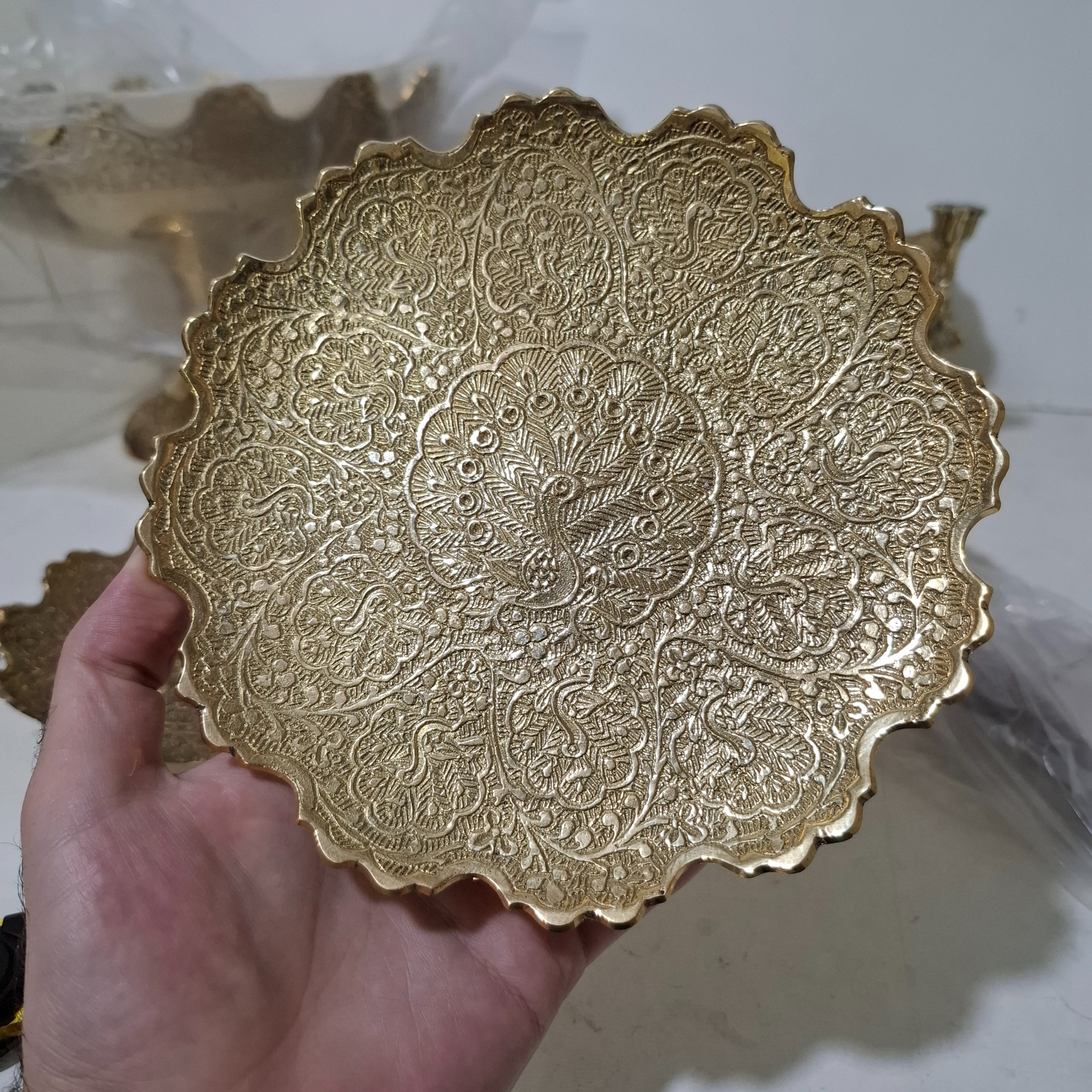 یک عدد پیش دستی لبه قلعه طرح طاووس با قطر 20 سانتیمتر تمام برنجی (برنز) ساخت هند با کیفیت بسیار بالا و سنگین با سطح کیفیتی درجه یک بسیار زیبا و کاملا کاربردی و قابل استفاده و مناسب استفاده دائم و طولانی مدت بدونه تغییر رنگ و قابل شستشو بدون تغییر رنگ