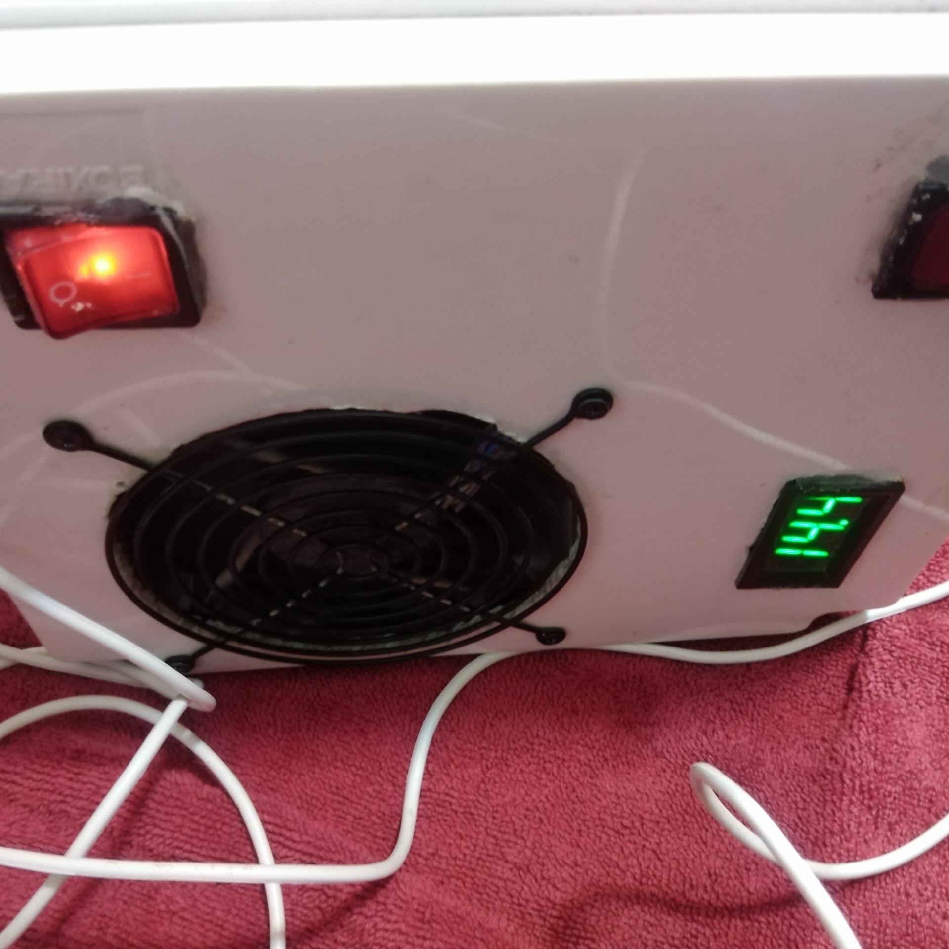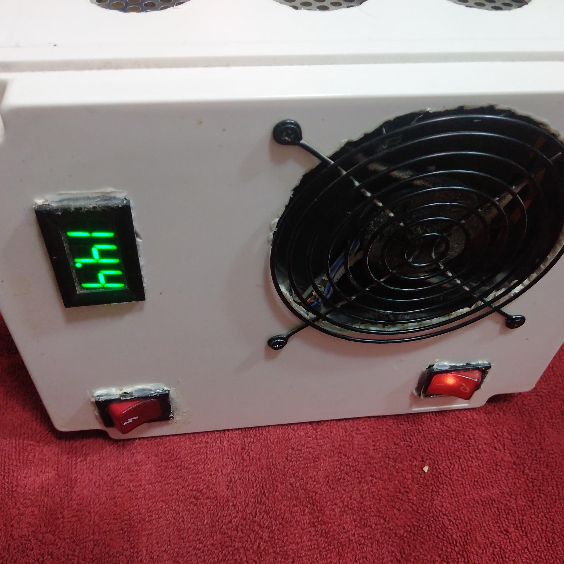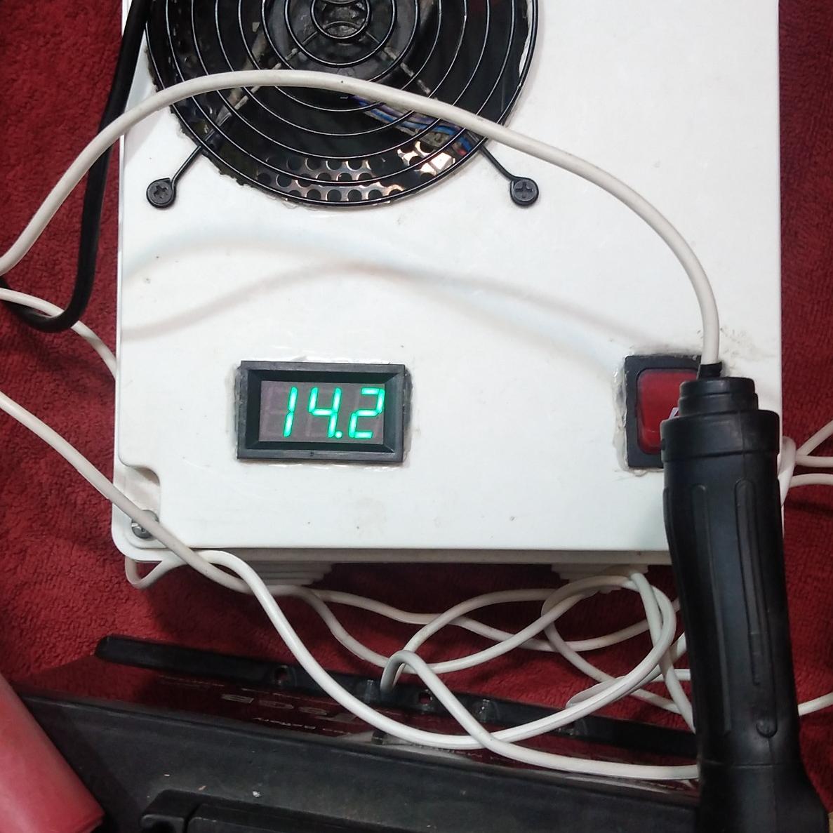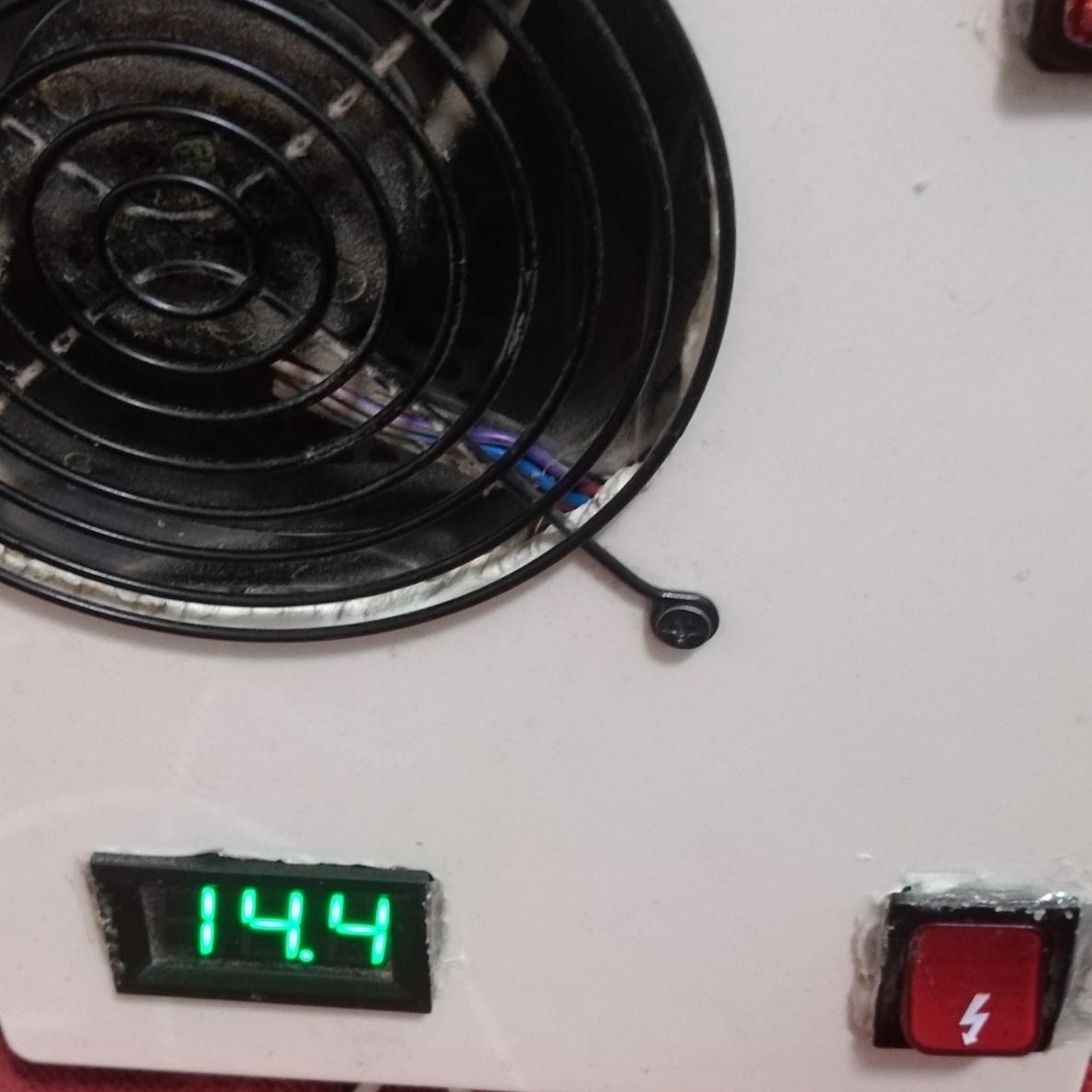 پس از اتمام شارژ کلید سمت چپ را خاموش کنید اگر عدد 12/5 به بالا باشد باتری سالم است 12 باشد باتری نیمه عمر و کمتر از 12 باتری ضعیف و رو به خرابی هست