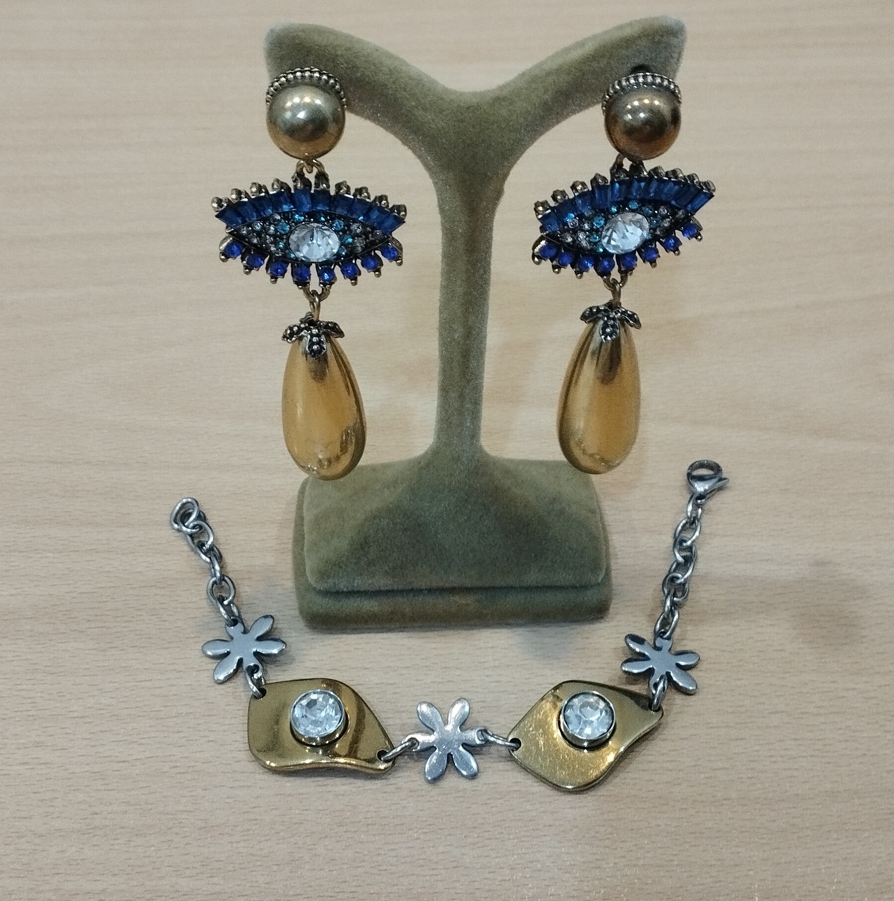 گوشواره چشم نظر خاص و دستبند جواهر نشان استیل
