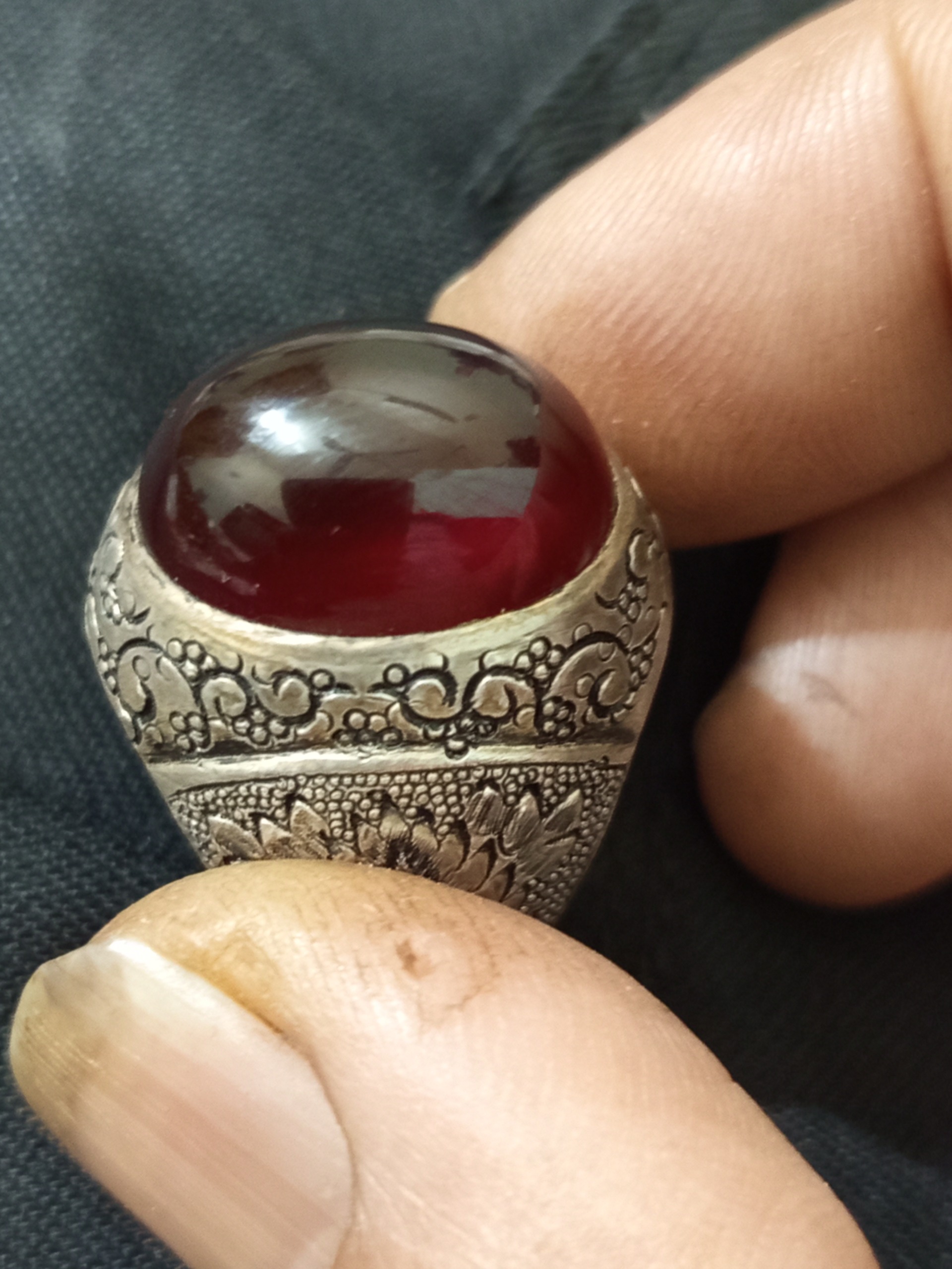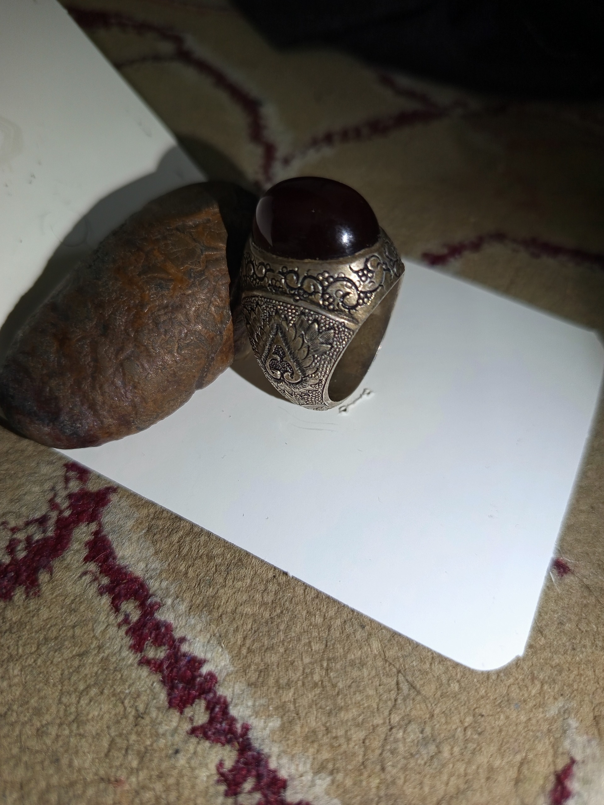انگشتر نقره دستساز قلم استاد عرشیا و نگین کرزی یمنی معدنی