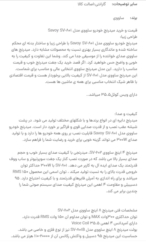 میدرنج 8 اینچ فوق حرفه ای ساووی مدل SV-801 اصلی