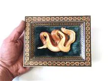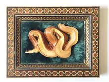تابلو بینظیر چوب نخل نقش الله با قاب خاتم قدیمی