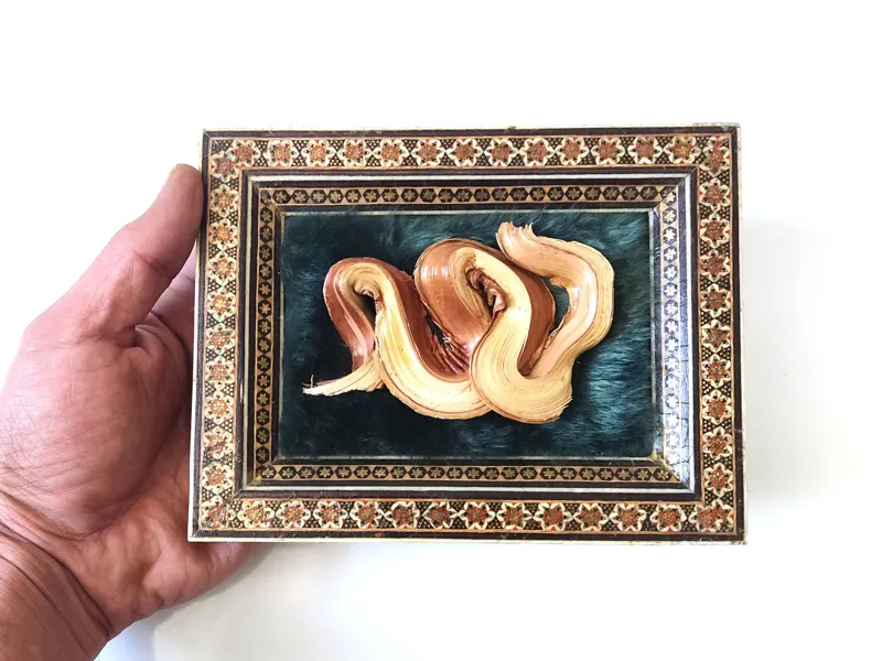 چوب نخل طبیعی است که در رشد طبیعی خود و با پیچش های مینیاتوری بسیار زیبا واژۀ الله را ساخته است.
