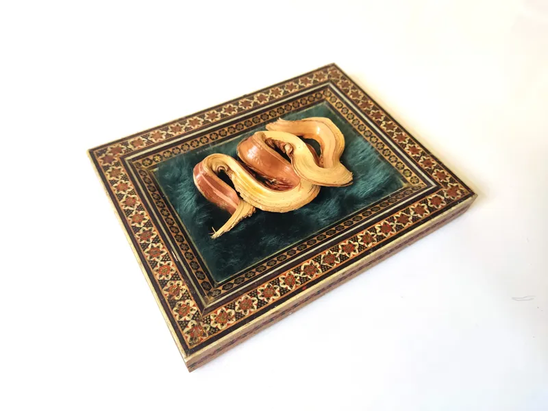 تابلو بینظیر چوب نخل نقش الله با قاب خاتم قدیمی شیراز