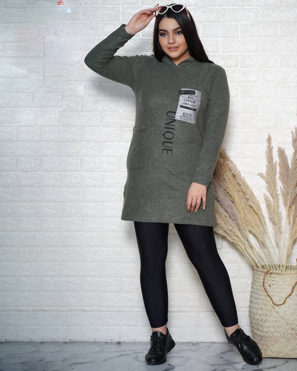 هودی بلند زنانه با طرح نقره کوب جیب کاربردی