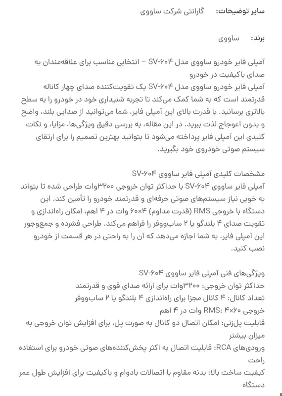 آمپلی فایر خودرو ساووی مدل SV-604 درجه1 اصلی