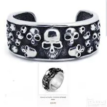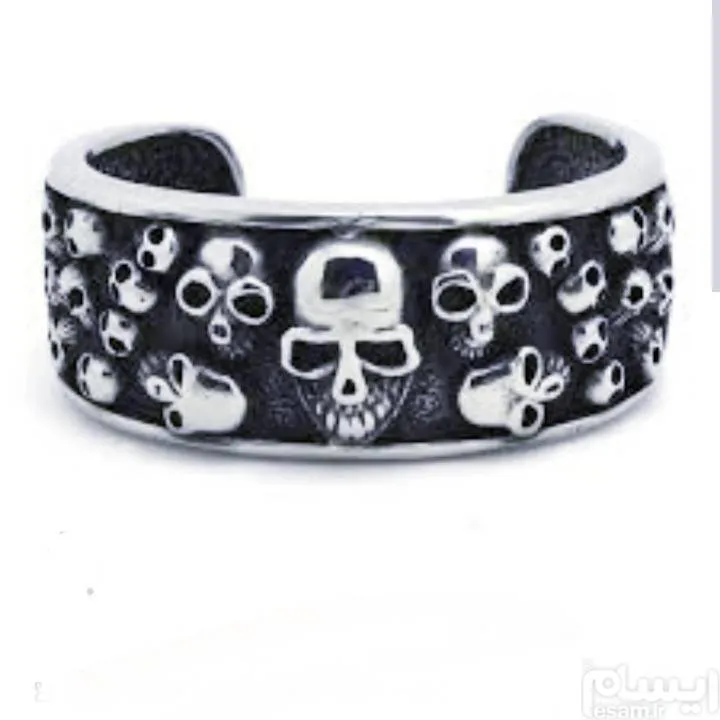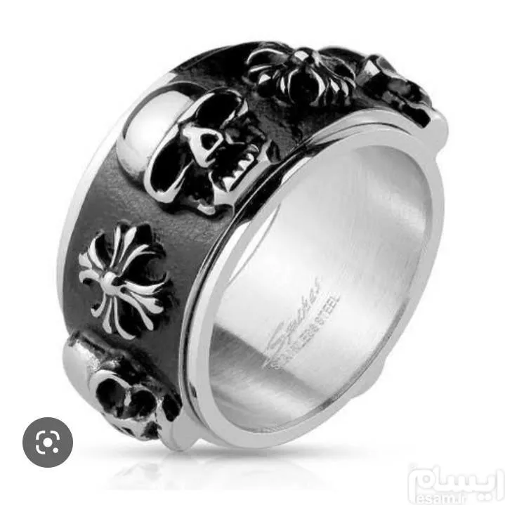 ست دستبند و حلقه انگشتری چرخان با طرح اسکال جمجمه از جنس استنلس استیل ،قسمت مشکی حلقه قابل چرخیدن هست.