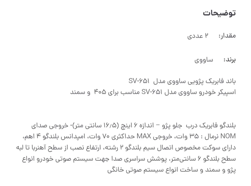| نوع کالا | اسپیکر کواکسیال - Coaxial Speakers |